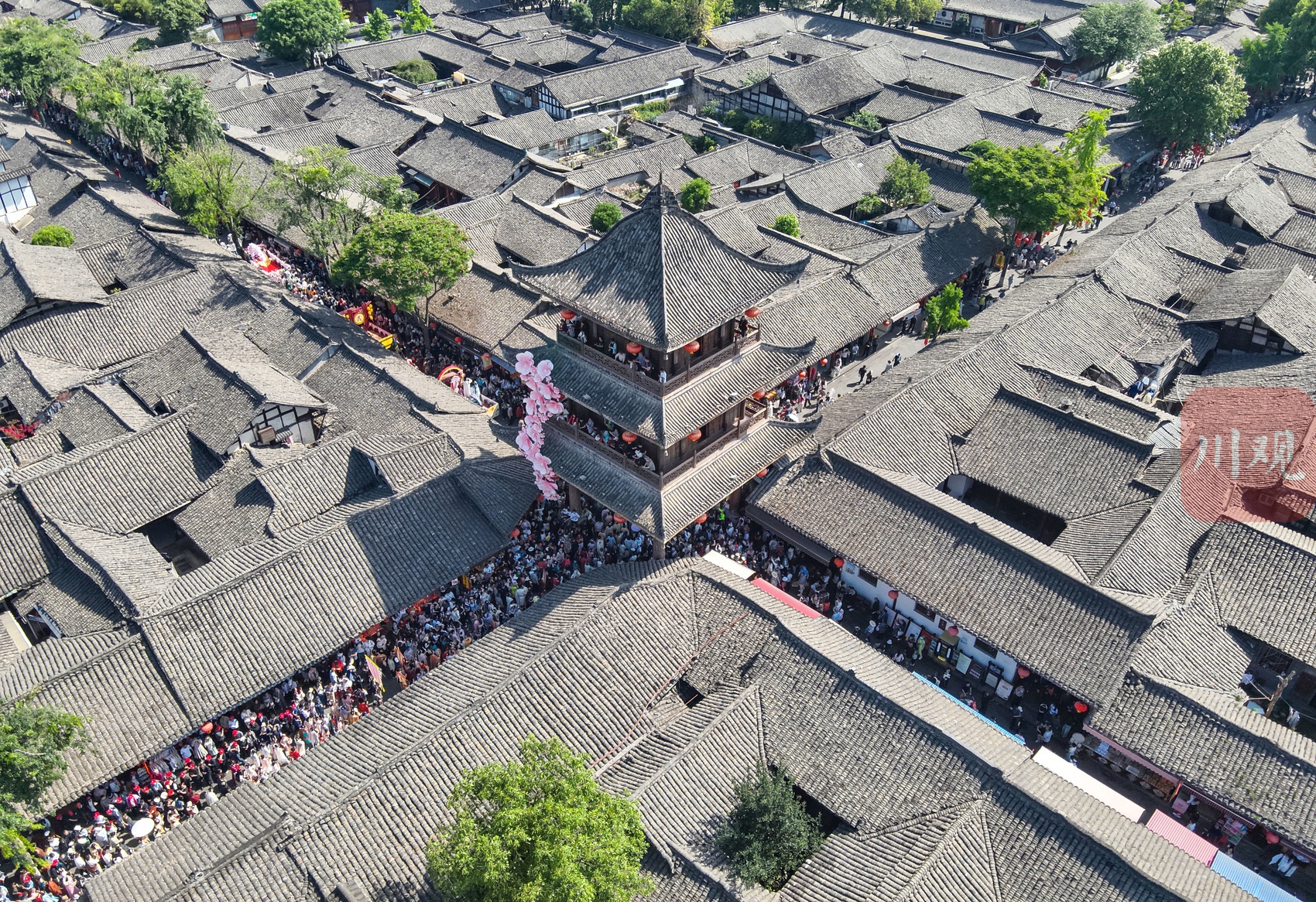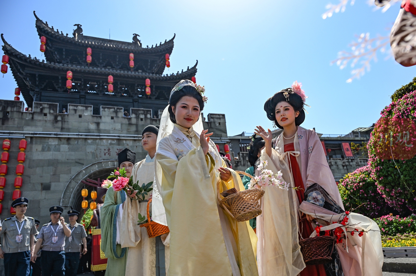 当日上午10时,阆中古城街巷间,盛大主题巡游惊艳启幕。上千名汉服爱好者列队前行,霓裳华服与古城青瓦古巷相映成趣。十二花神会、武将仪仗队、国色阆中巡游队三大主题花车鱼贯登场,组成绵延长龙穿行于古城肌理,一步一景绘就流动国风长卷,让千年古城在沉浸式氛围中鲜活出圈、潮味十足。