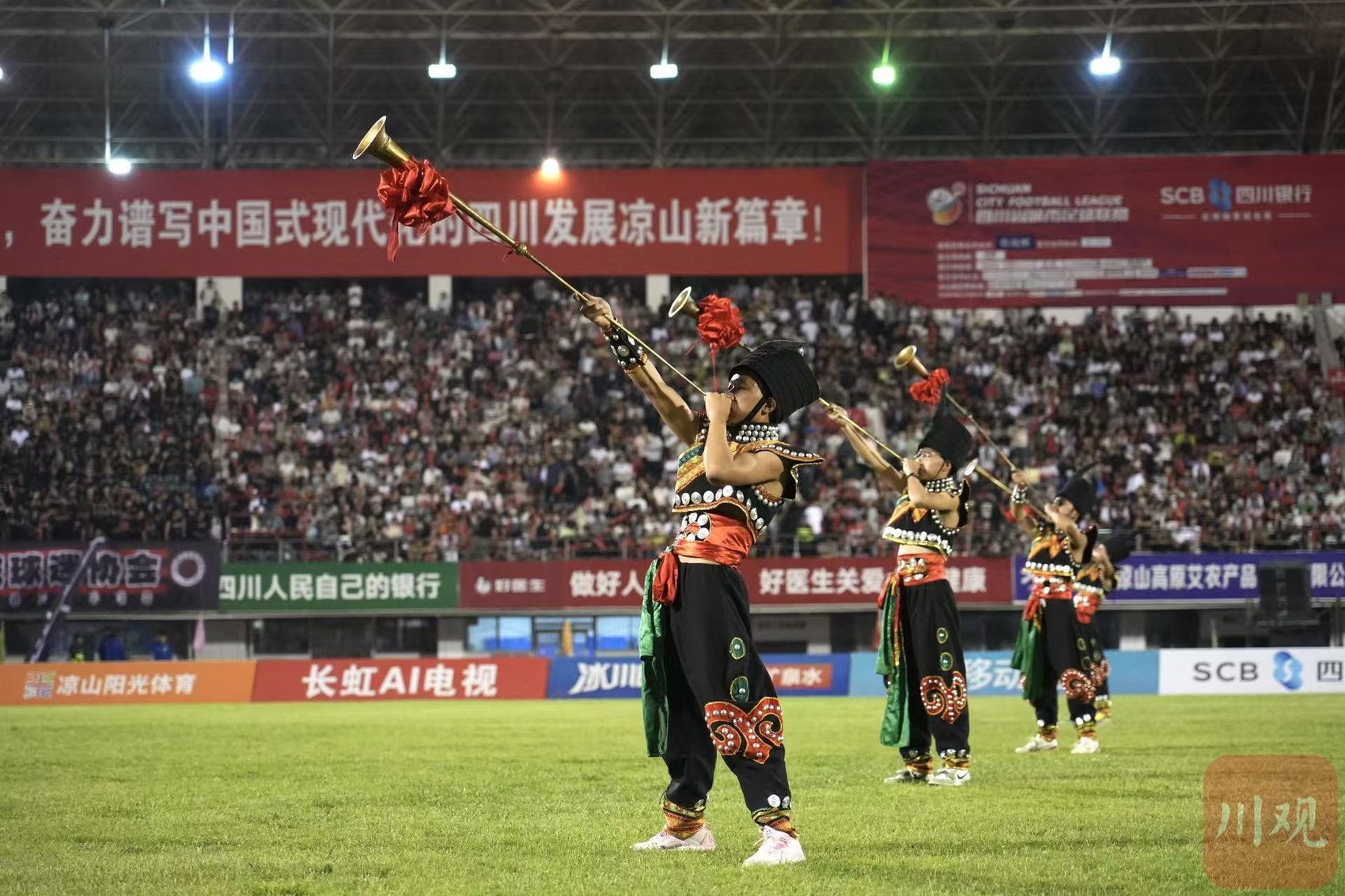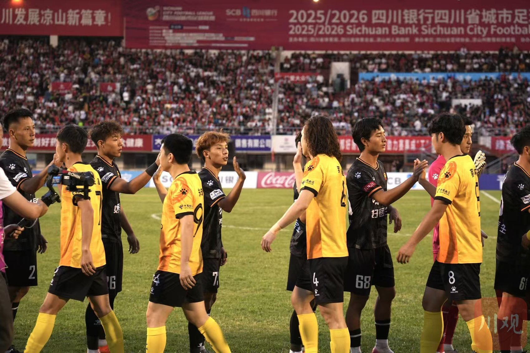 最终,经过97分钟鏖战,凉山队以3比2终结成都队“不败金身”。现场,球迷唱起祝酒歌,为凉山队庆祝,这也是川超开赛以来,成都队首次被打破“不败金身”。