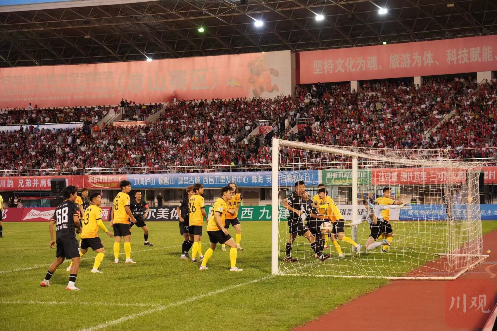 开场第2分钟,凉山队63号郑布都角球破门,助球队1比0领先。