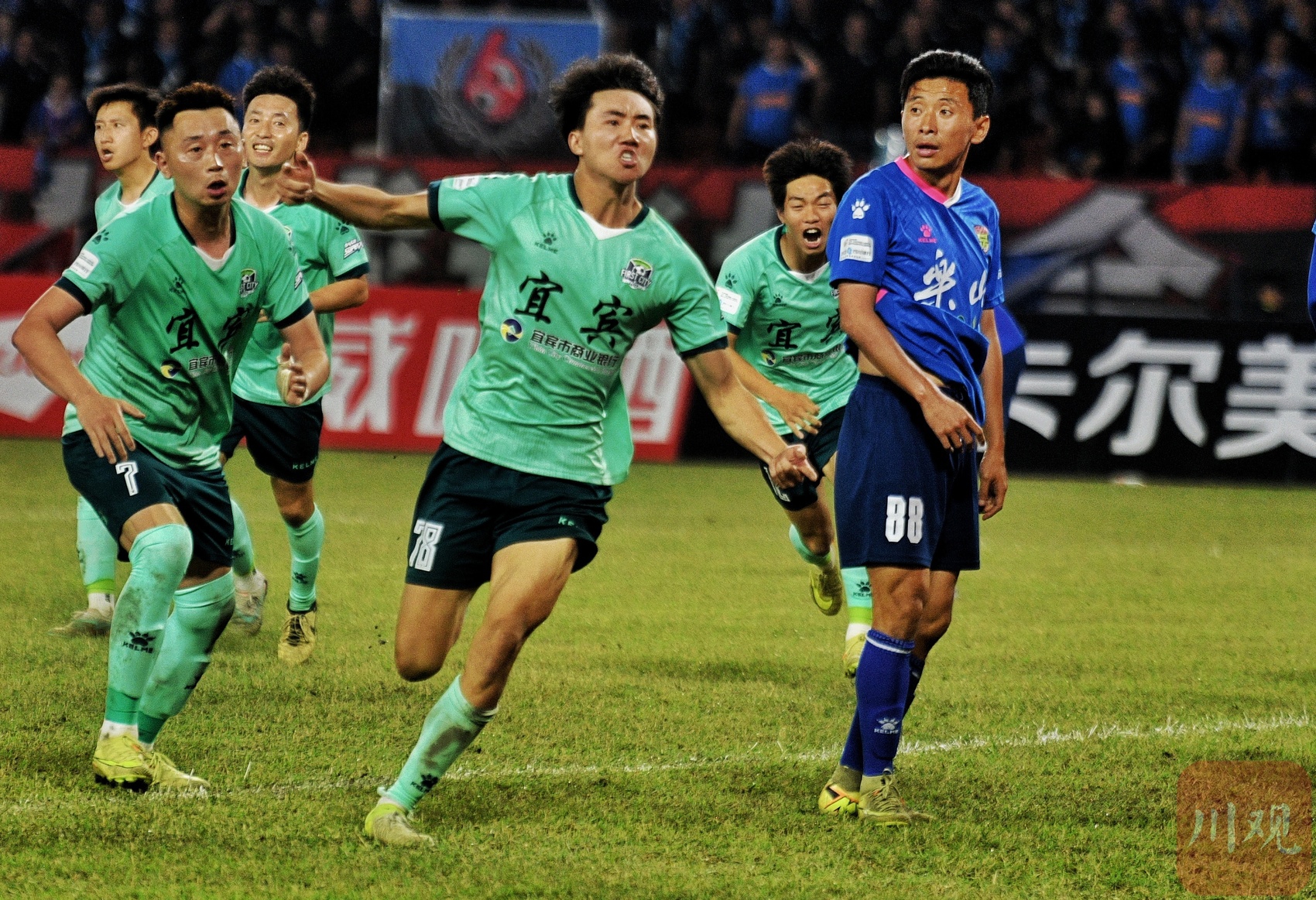踢入“神仙球”,宜宾78号邓以珩庆祝进球。