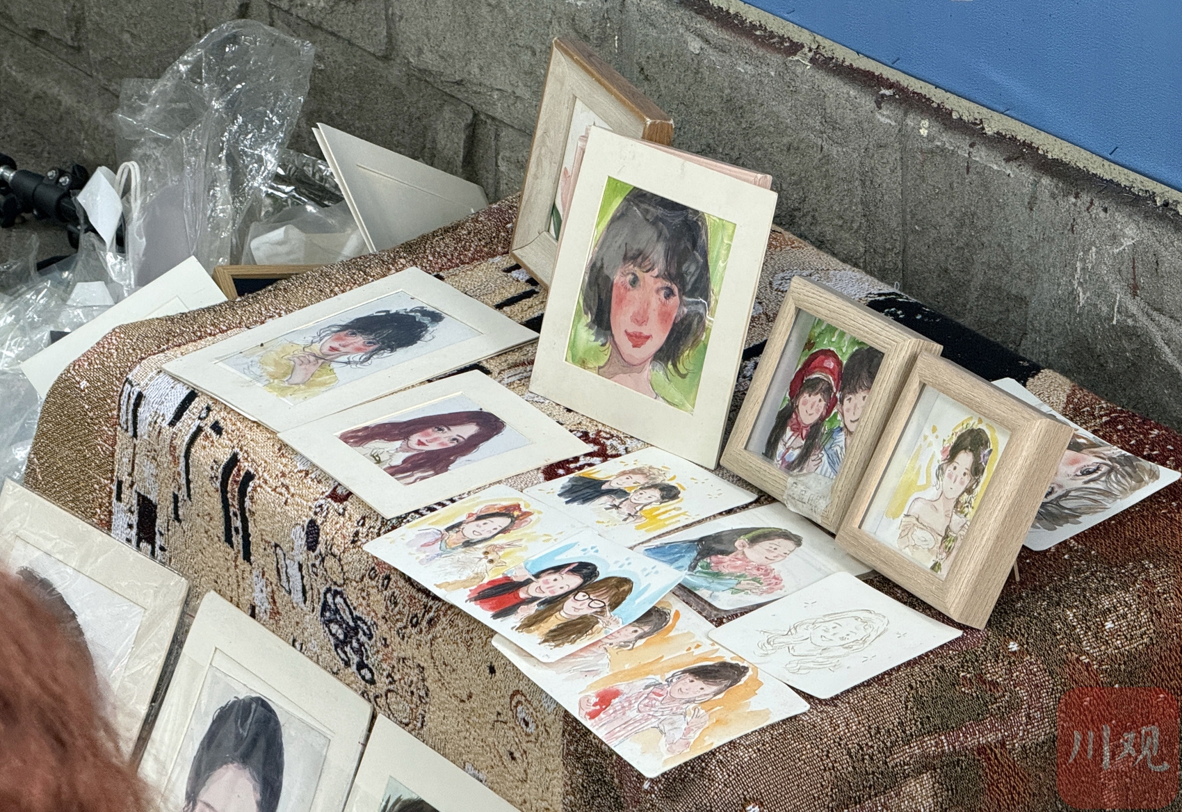 排队的有情侣,也有朋友结伴前来。有人把画像当作约会纪念,有人想留下当天的穿搭,还有人原本只是路过,看着摊位前热闹,临时决定“也来一张”。