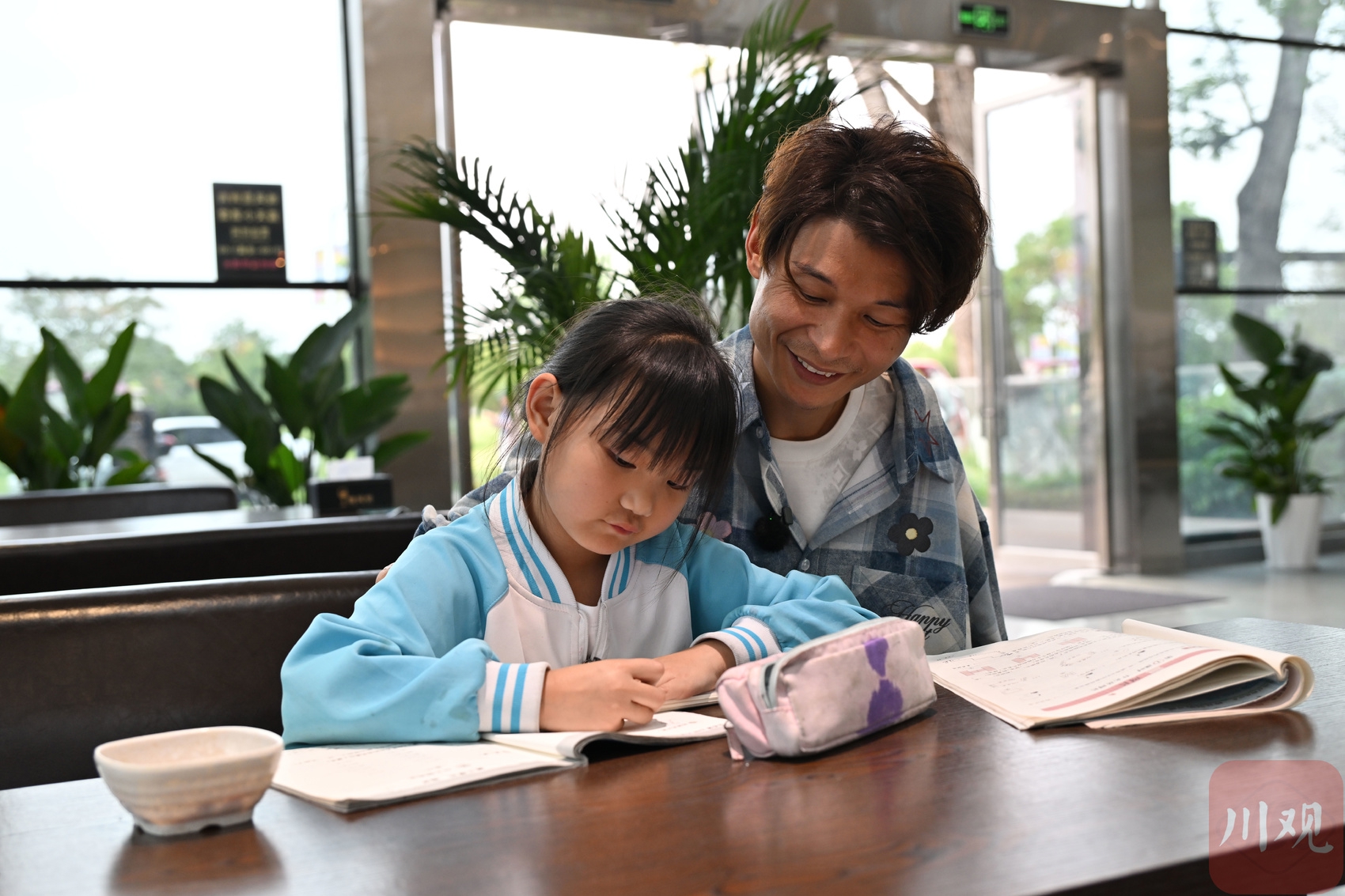 素林辅导女儿做作业。