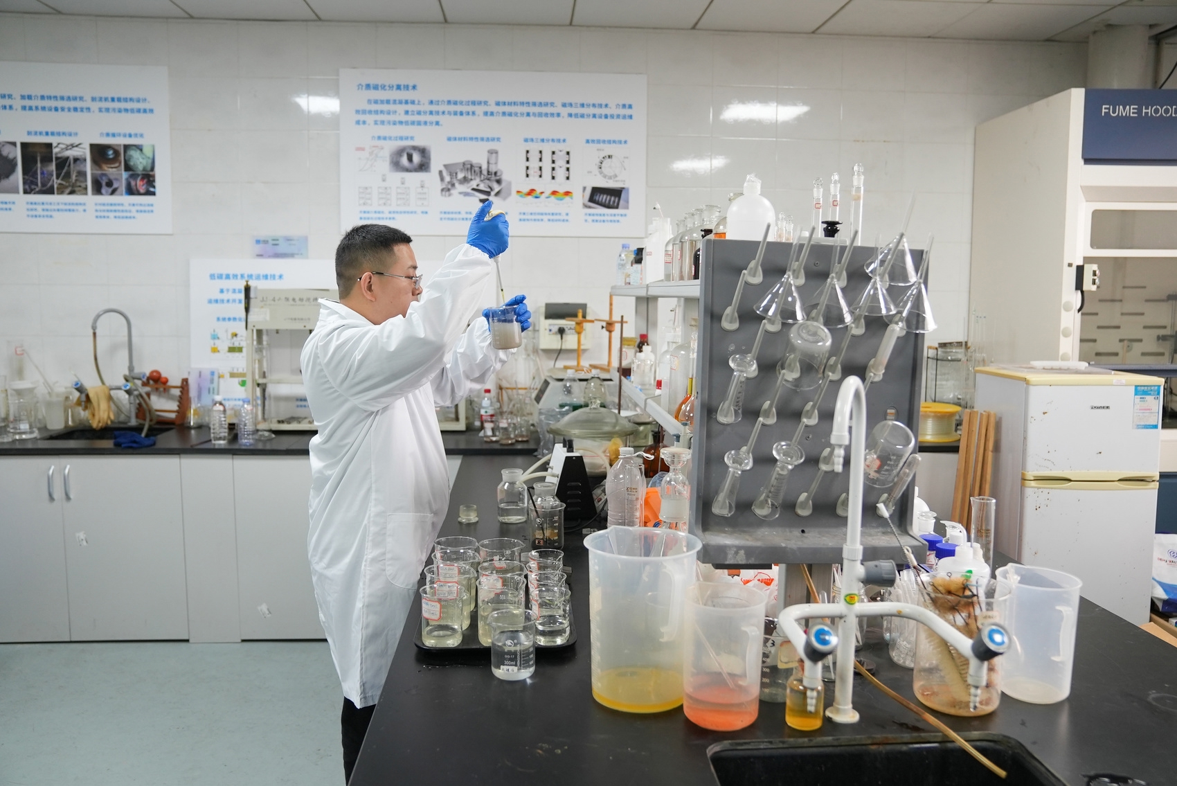“这就是我们的超磁分离技术,实验看起来很简单,但运用到实际场景中却不容易。”唐珍建说,要让这项技术站稳市场、落地见效,最重要的就是做好平衡。
