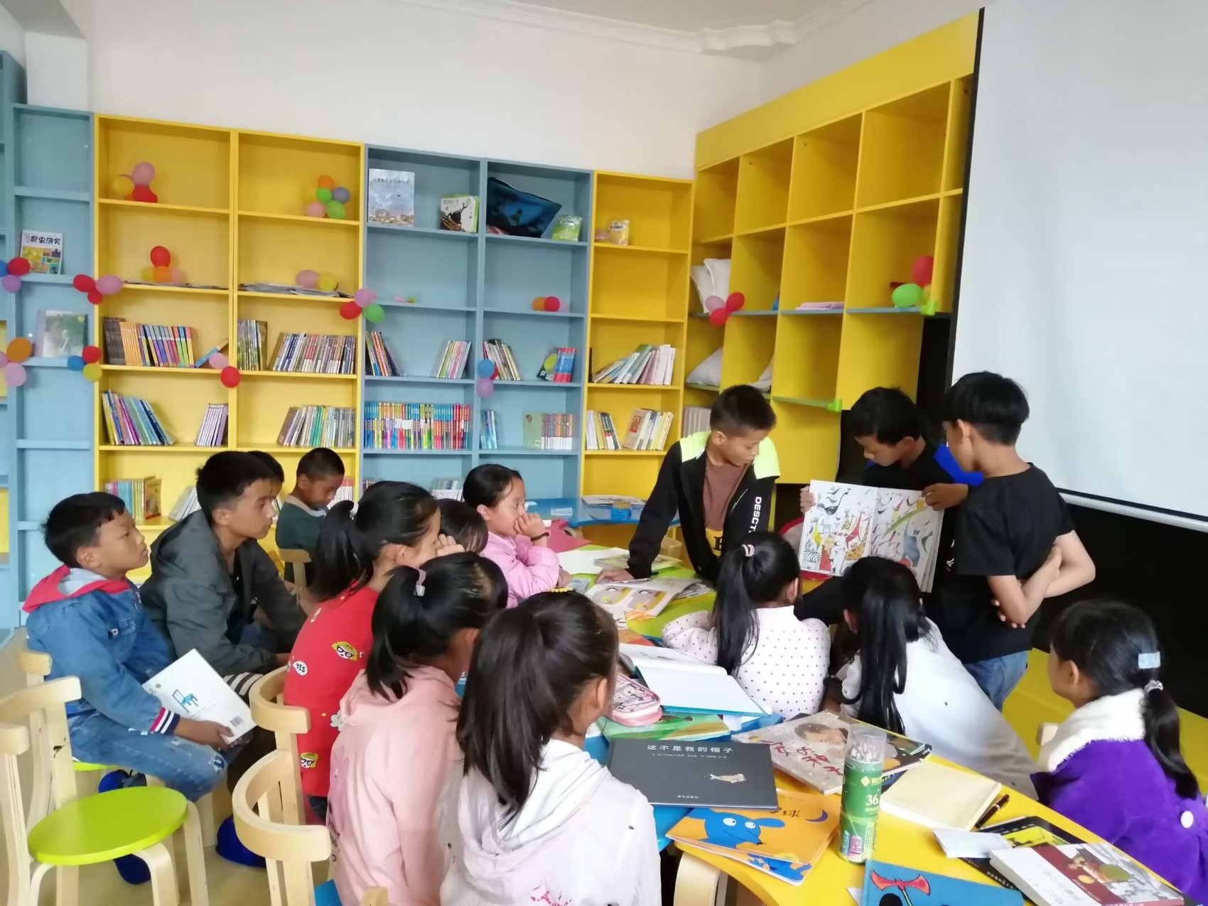 云南大理宾川县拉乌彝族乡儿童阅读馆,孩子们参与阅读分享活动。受访者供图