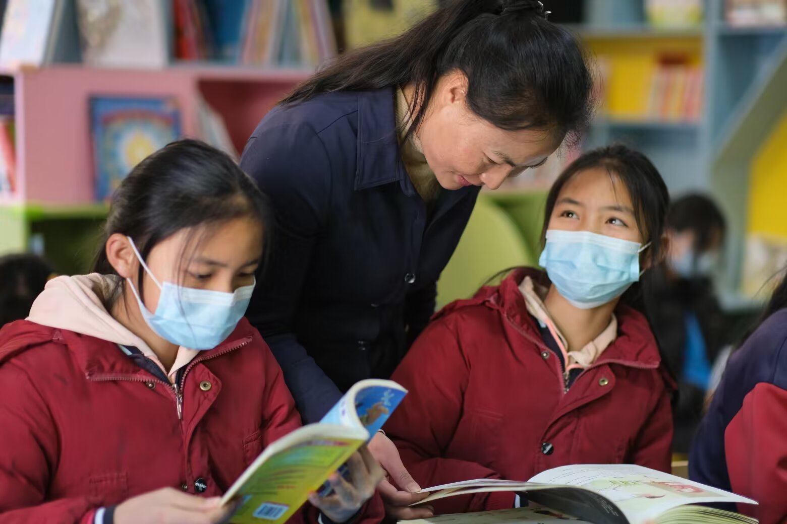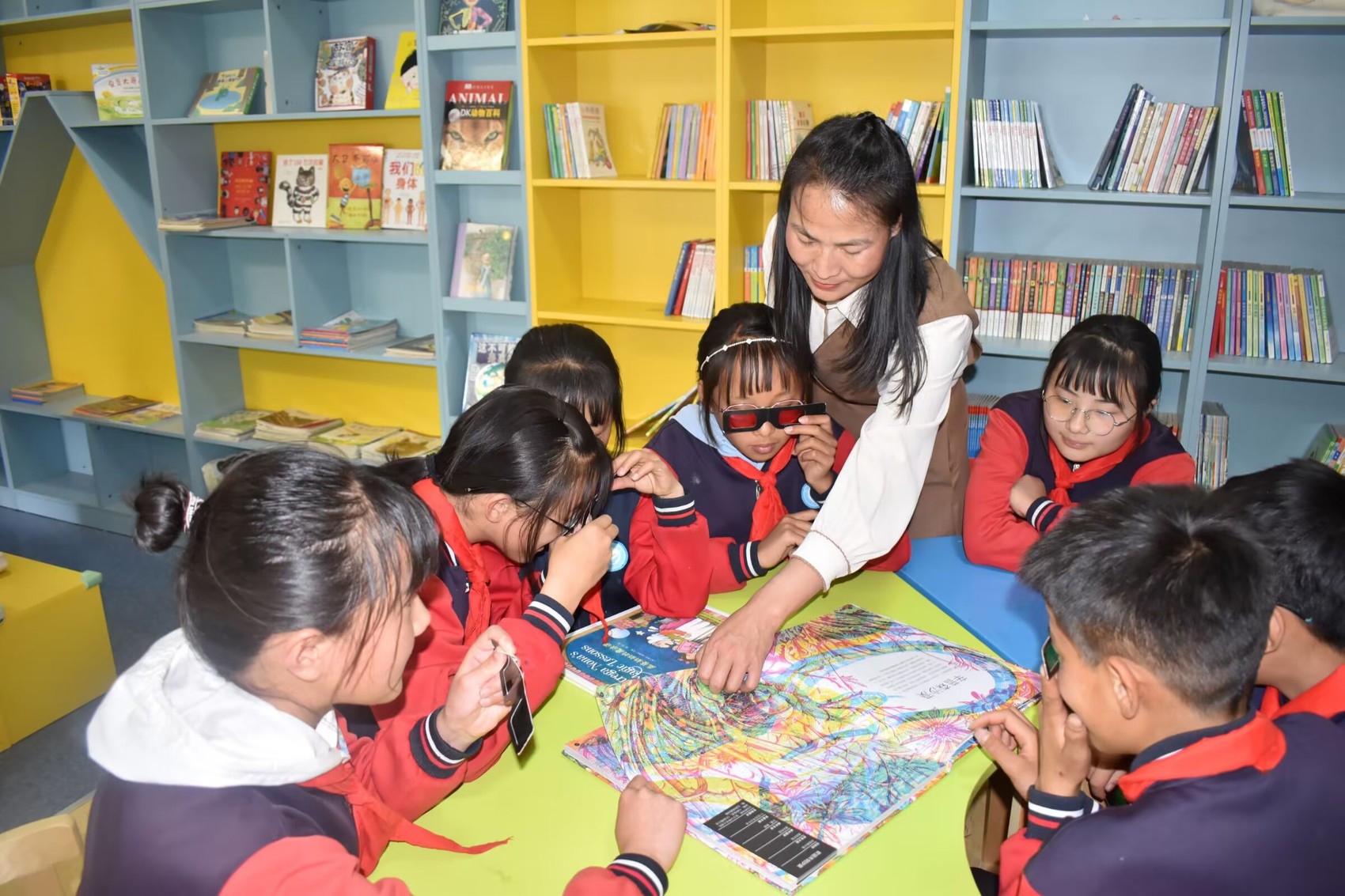 云南大理宾川县拉乌彝族乡儿童阅读馆,谢红芬指导村里的孩子们阅读。受访者供图