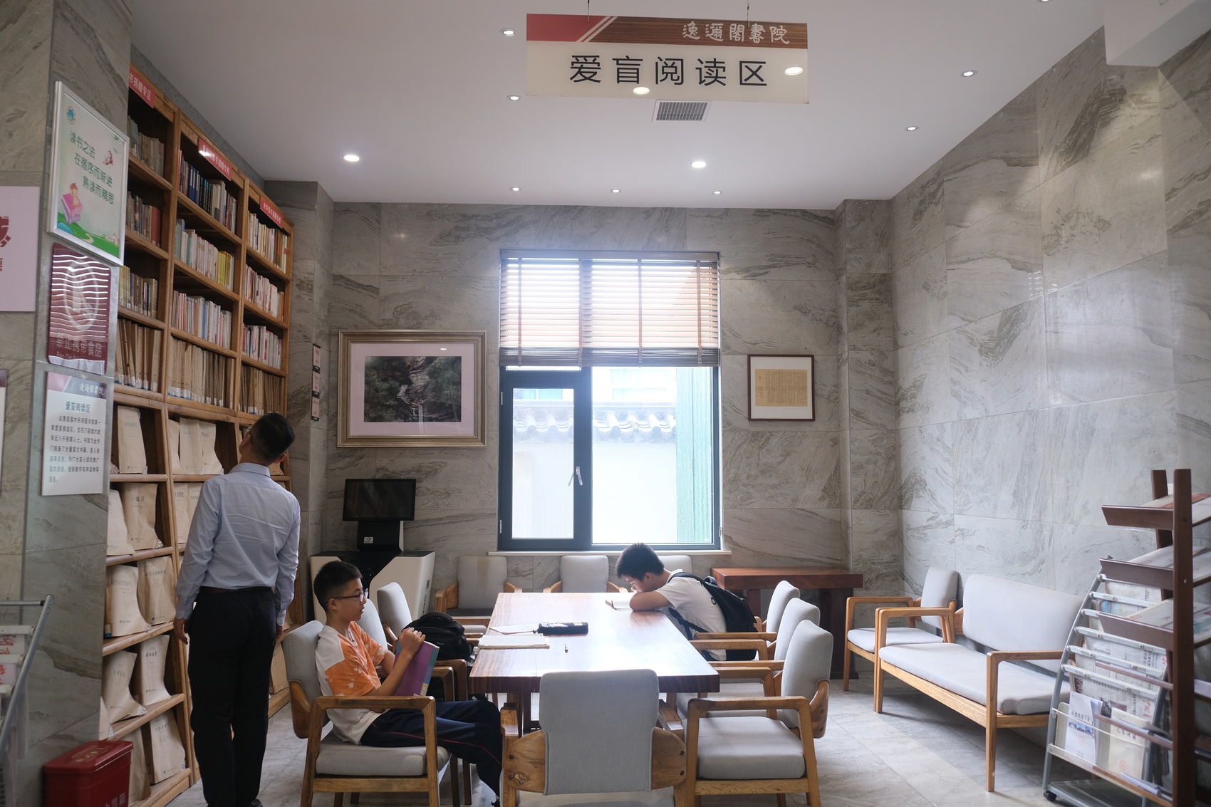 湖南常德逸迩阁书院爱盲阅读区,读者在阅读、选书。漆世平 摄