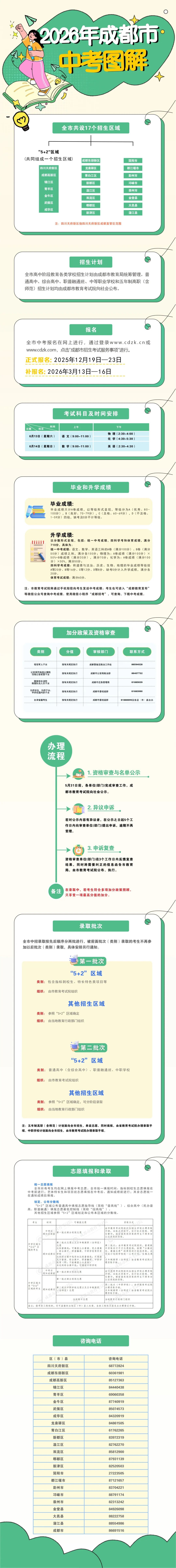 近日,成都市招考委、成都市教育局印发《关于2026年全市高中阶段学校考试招生工作安排及日程的通知》,对2026年中考及高中招生工作作出了安排。今年高中招生政策整体保持稳定,并结合实际进行了优化完善。下面,成教君为您具体解读今年的中考政策!