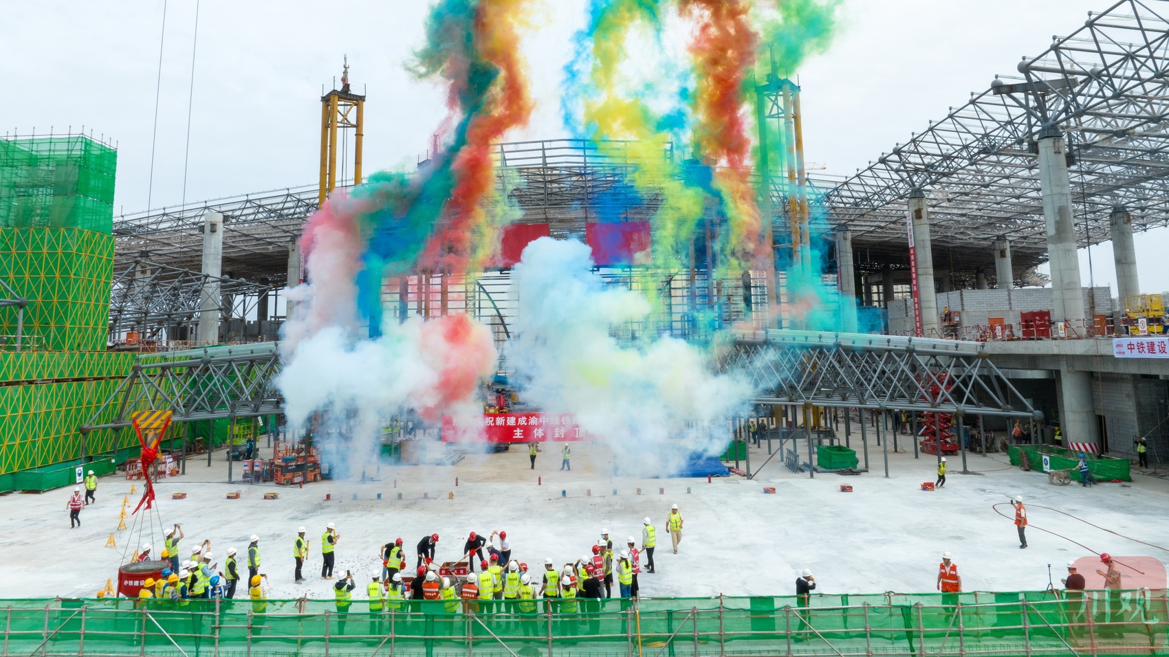4月20日,成都龙泉驿站站房主体结构顺利封顶,项目建设由主体结构施工阶段全面转入机电安装、装饰装修及配套工程施工阶段。