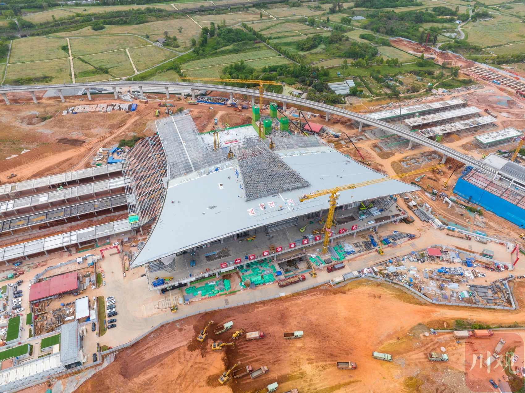 目前,项目主体结构已全部完成,金属屋面侧式站房已完成,幕墙及装饰装修工程正有序推进。项目副总工苑贺立表示,工程预计将于今年年底全部完工并具备投用条件。