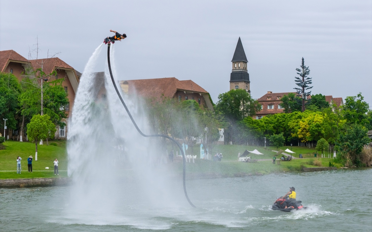 本次旅行季立足金堂沱江水域、浅山生态、低空资源与体育赛事优势,推出“水、陆、空”全维度文旅体验。五一假期,三大核心活动板块同步亮相:水上狂欢·沱江活力耍水季依托沱江水域,推出天府橘乡泼水狂欢、五凤古镇溪畔露营、龚家山峡谷漂流、淮州山水运动中心水上飞人等项目;陆地趣玩·浅山休闲漫享季依托龙泉山浅丘生态,以“徒步+”理念构建“一径五山”精品线路IP,推出浅山徒步打卡、非遗市集、田园农趣等内容;空中揽胜·低空体验季依托淮州机场、小云飞行营地,开设固定翼飞机观光、滑翔伞飞行等项目,提供俯瞰金堂山水的新视角。