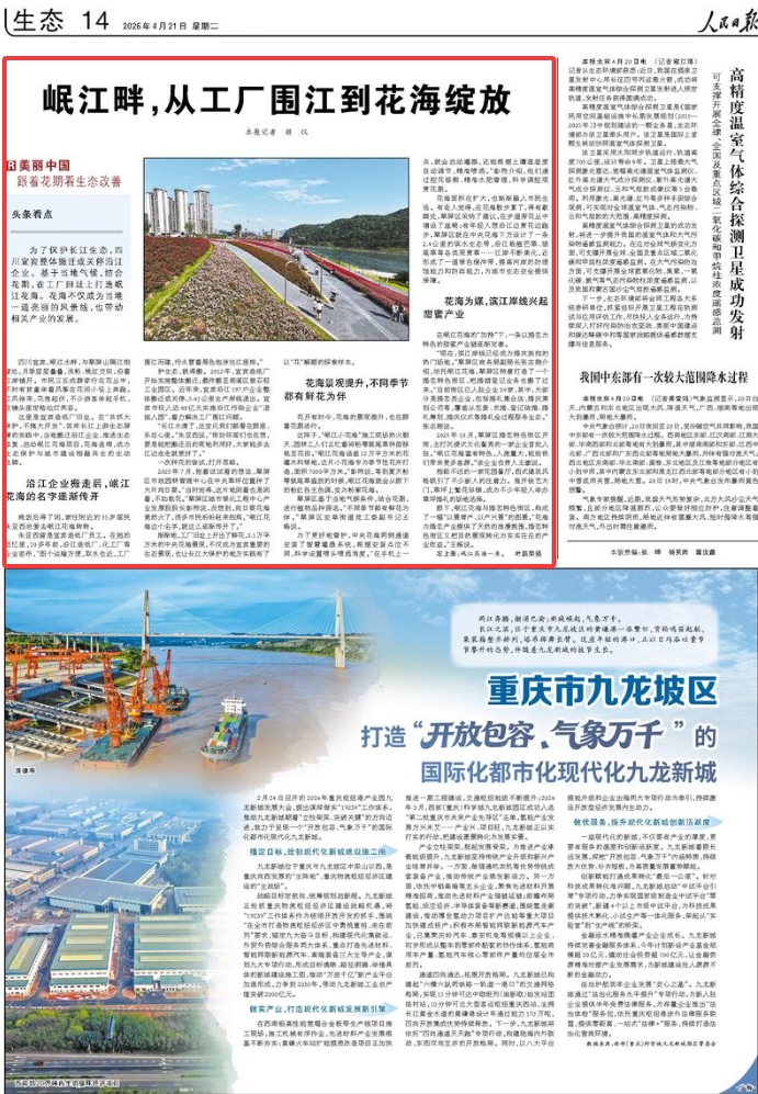 这里是宜宾造纸厂旧址。在“共抓大保护,不搞大开发”、筑牢长江上游生态屏障的实践中,当地搬迁沿江企业、推进生态修复、启动岷江花海项目,花海连绵,成为生态保护与城市建设相融共生的生动注脚。