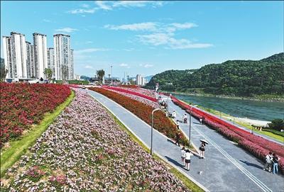 花海面积在扩大,也渐渐融入市民生活。有老人觉得,在花海散步累了,得有歇脚处,翠屏区采纳了建议,在步道旁花丛中增设了座椅;有年轻人想沿江边赏花边跑步,翠屏区就在中央花海下方设计了一条2.4公里的滨水生态带,沿江栽植芒草、狼尾草等各类观赏草……江岸不断美化,还形成了一道绿色缓冲带,提高河岸的防侵蚀能力和防洪能力,为城市生态安全提供保障。