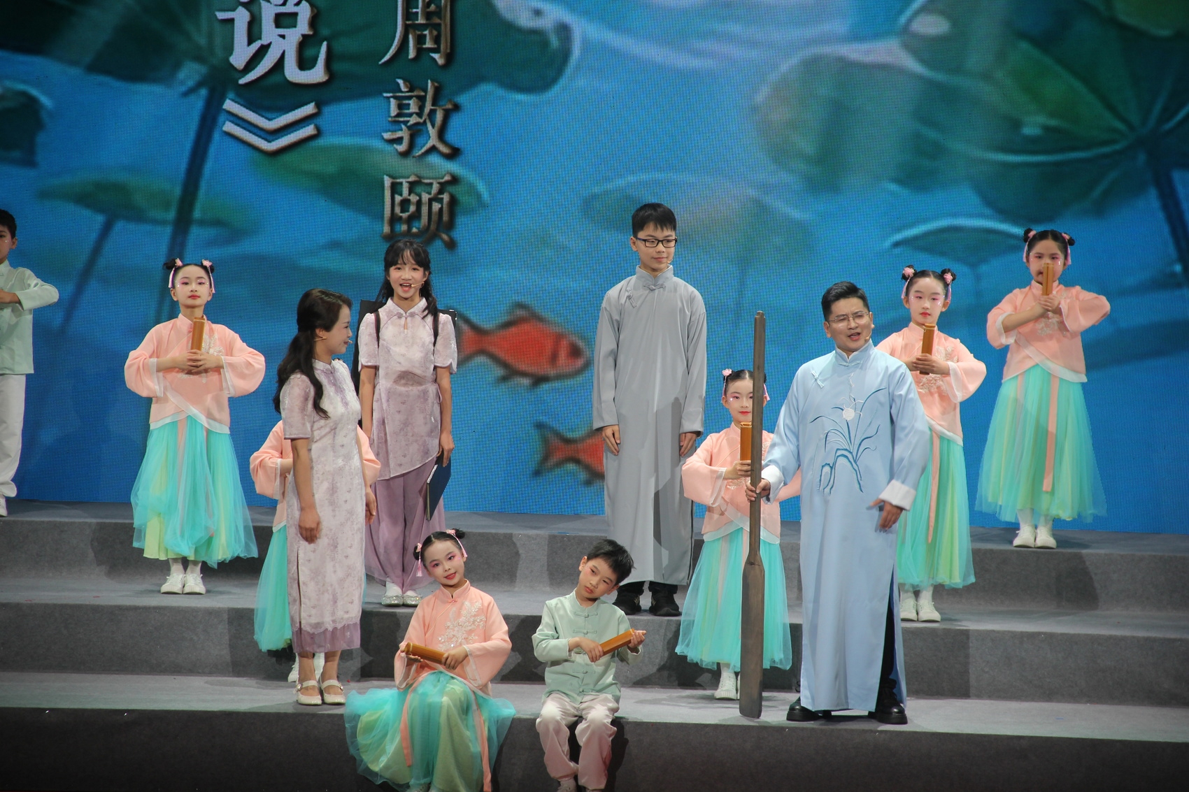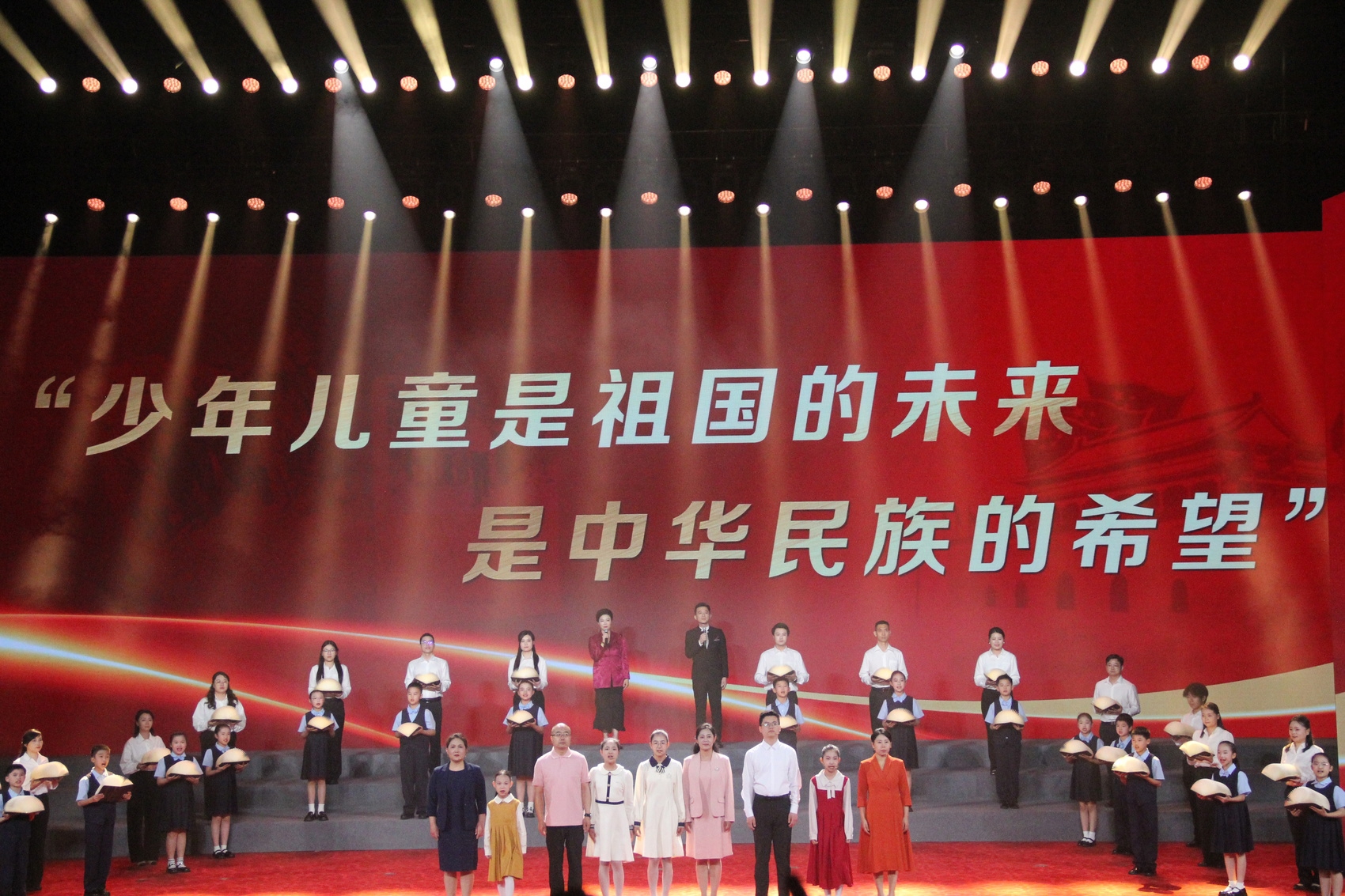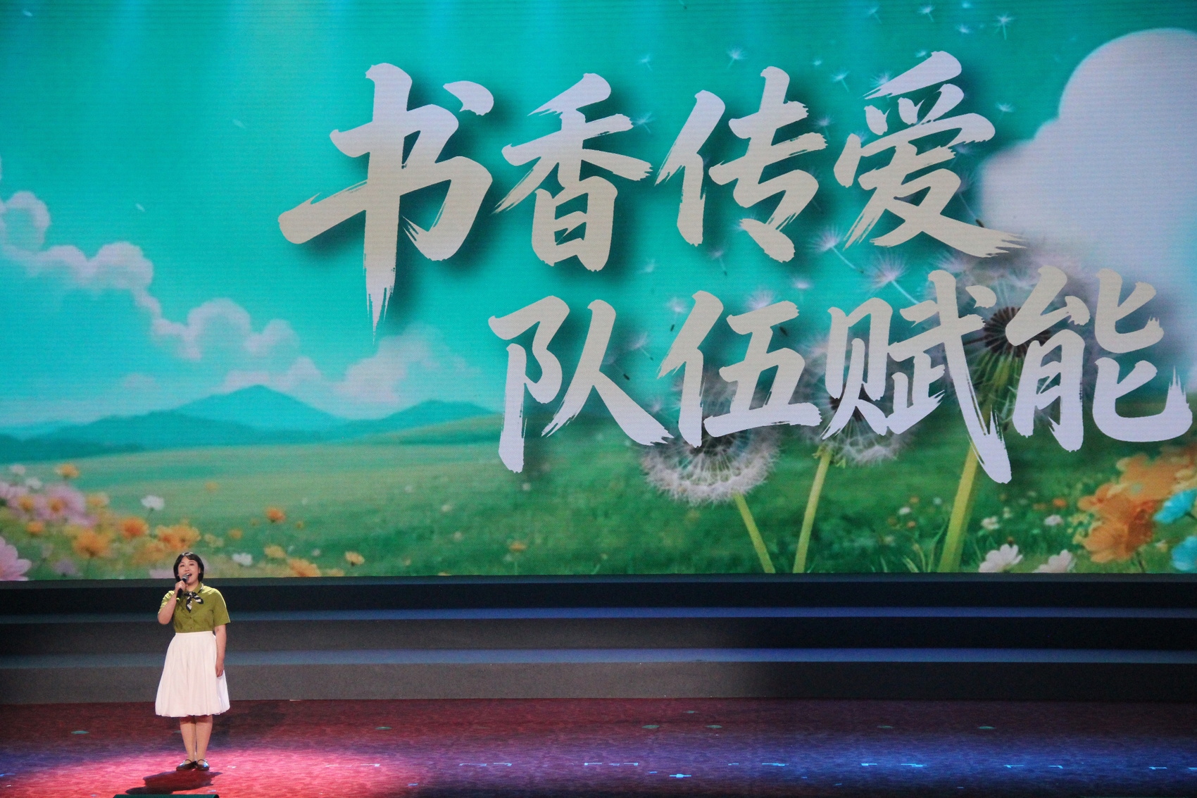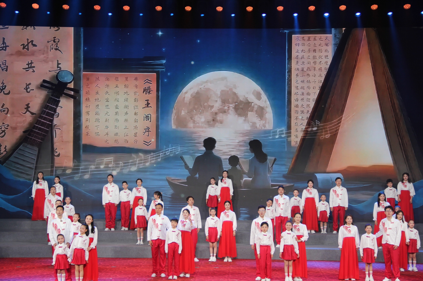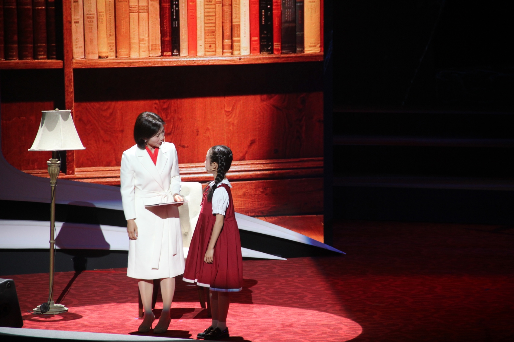 “雪皑皑,野茫茫,高原寒,炊断粮……”舞台一角,肖美花和她的女儿康靖希并排站立,共同诵读《过雪山草地》《大会师》等《长征组歌》的经典片段。铿锵的字句、真挚的情感,深深感染着台下观众。