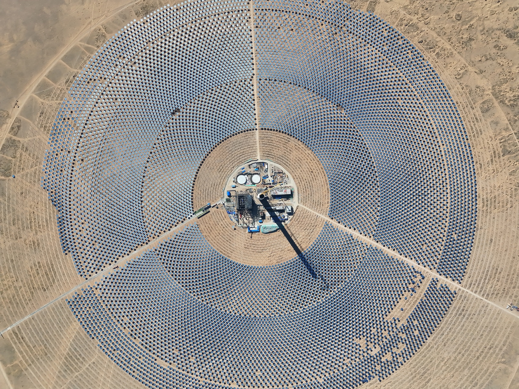 上万面镜子,最远的在1.5公里开外,要把阳光齐刷刷地反射到这么小的一个“针眼”上。