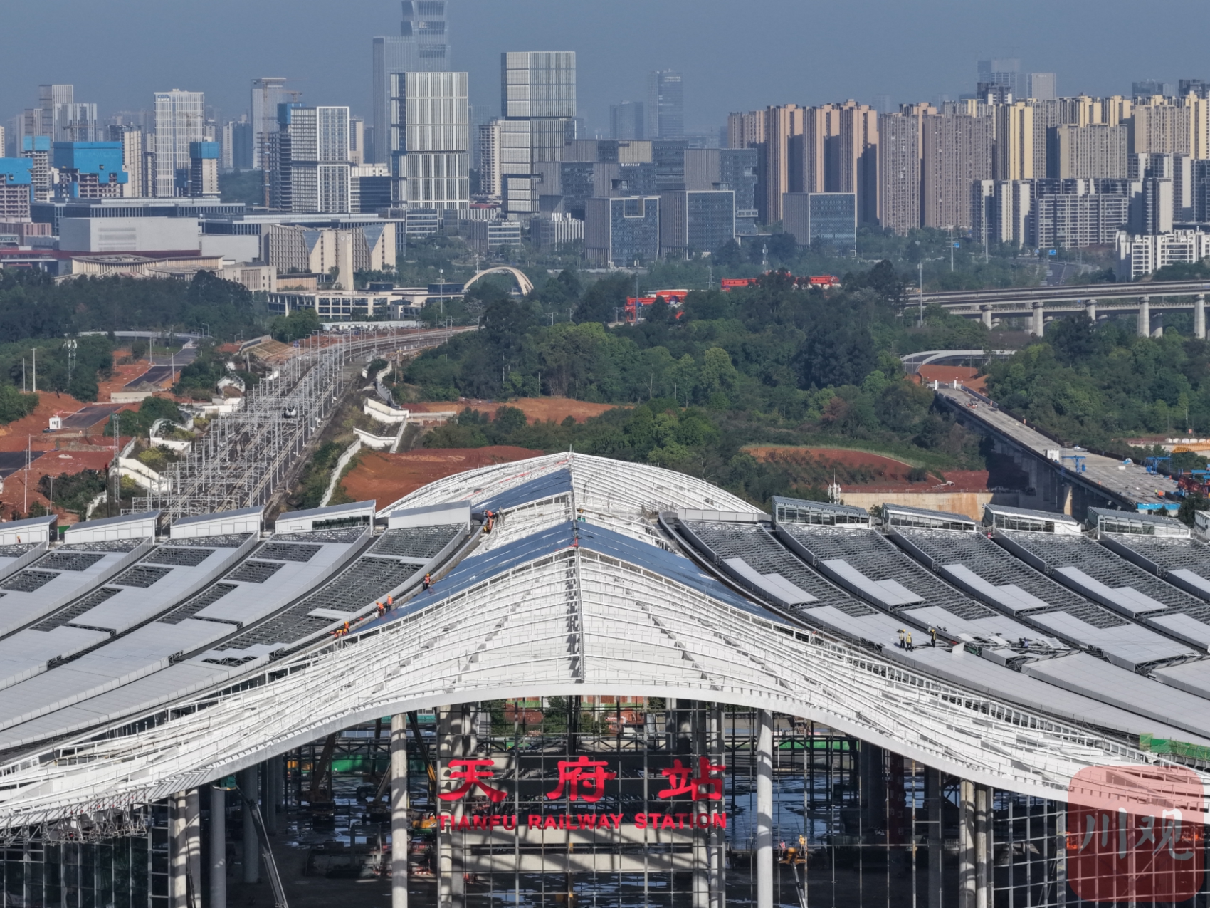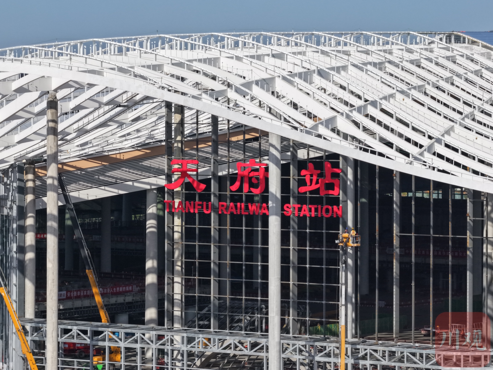 据了解,站房外立面玻璃幕墙安装在4月里已完成70%,标志性的“凤凰眼”结构正精细安装,整体工程稳步推进。