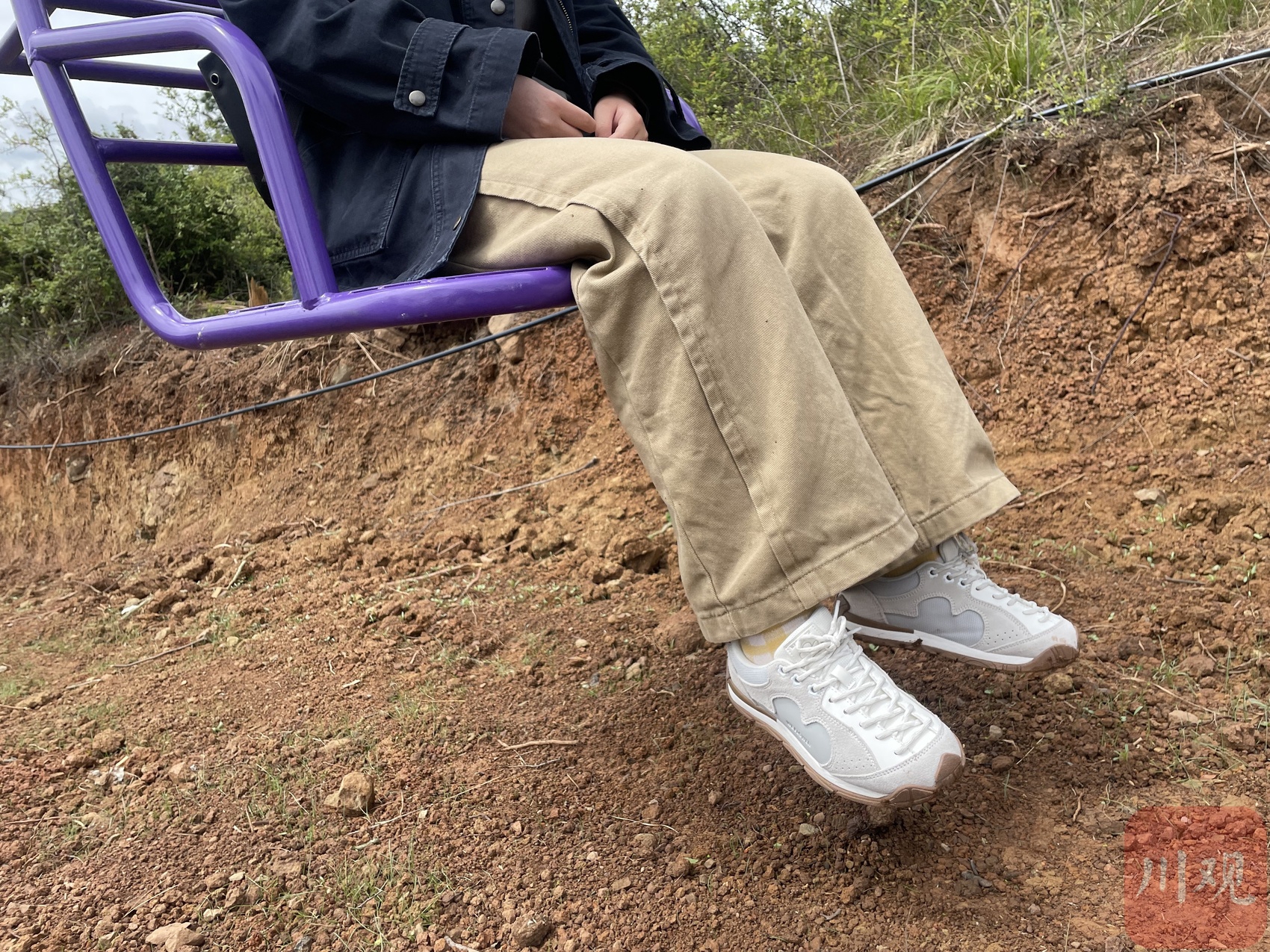 游客乘坐缆车时,脚底贴近地面。袁茹莉 摄