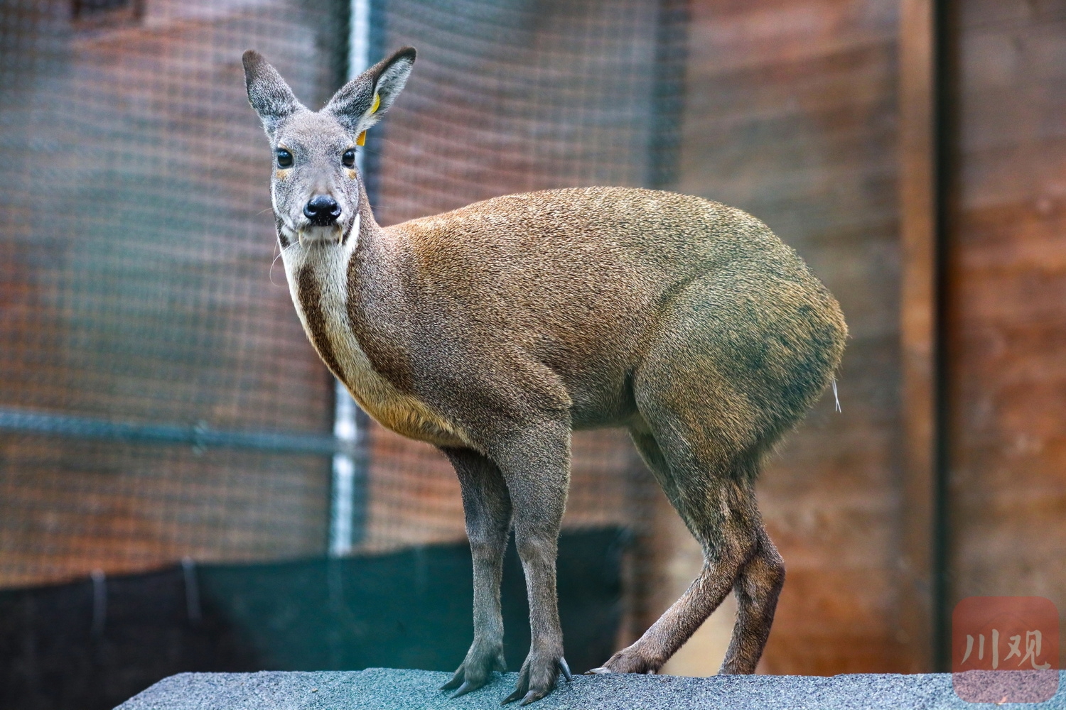 林麝爬到汉源养殖园区空地高处眺望。