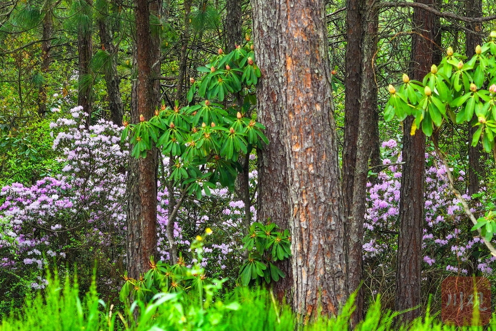 园区森林下的高山杜鹃开放。