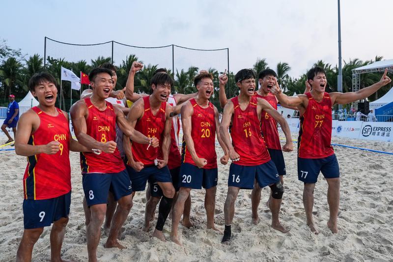 沙滩手球男子小组赛:中国队胜斯里兰卡队