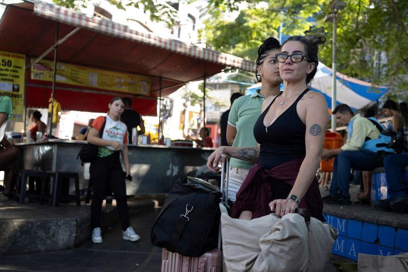 4月20日,在巴西里约热内卢发生枪战的维迪加尔贫民窟,滞留游客等待离开。