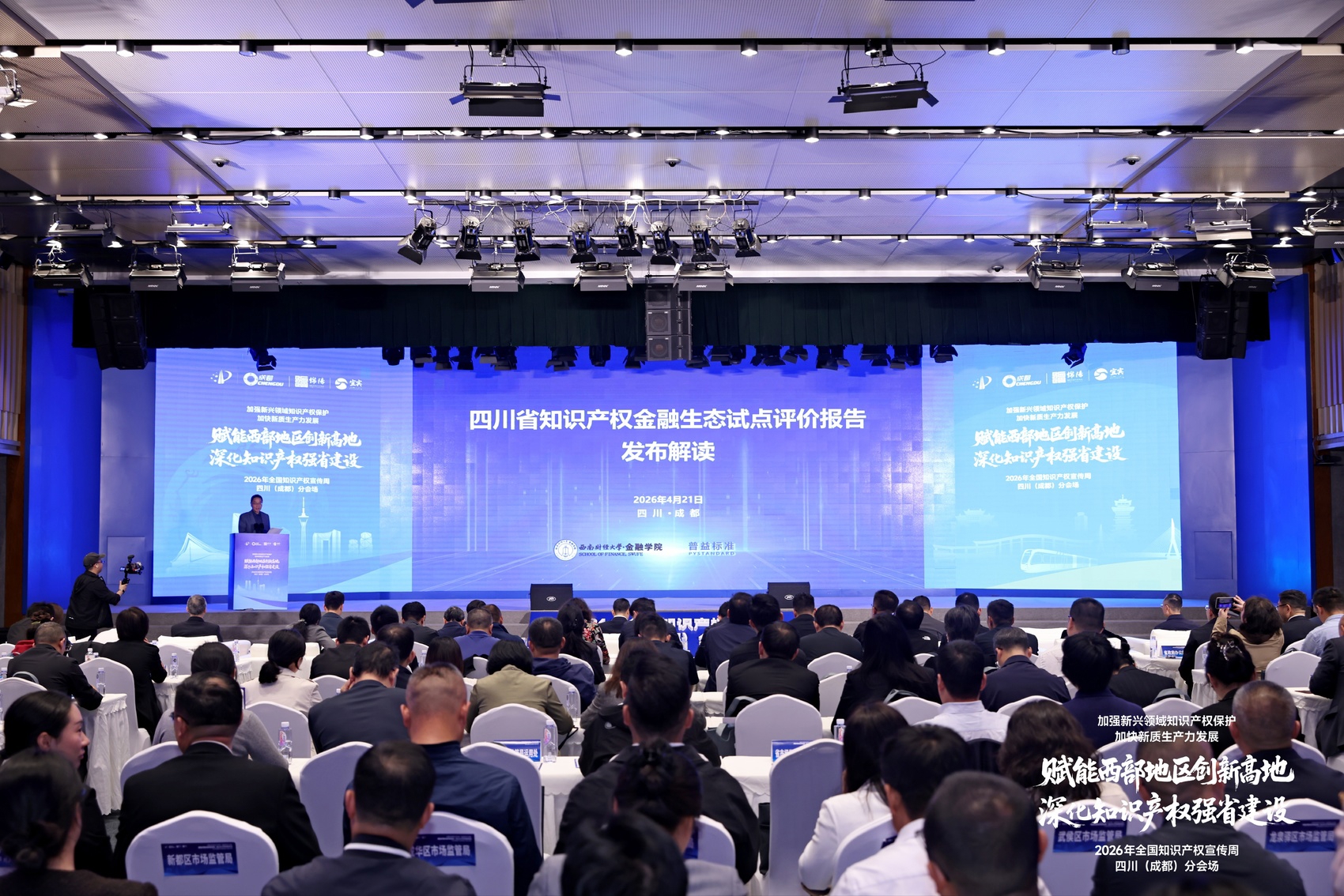 在知识产权与金融深度融合的浪潮中,四川的探索实践成效如何?在4月21日举行的2026年全国知识产权宣传周四川分会场活动上,《四川省知识产权金融生态试点评价报告》正式发布。报告显示,四川知识产权金融生态综合实力全国排名第六,金融服务与环境保障优势突出;省内七大先行试点区域呈现出差异发展、特色鲜明的良好态势。