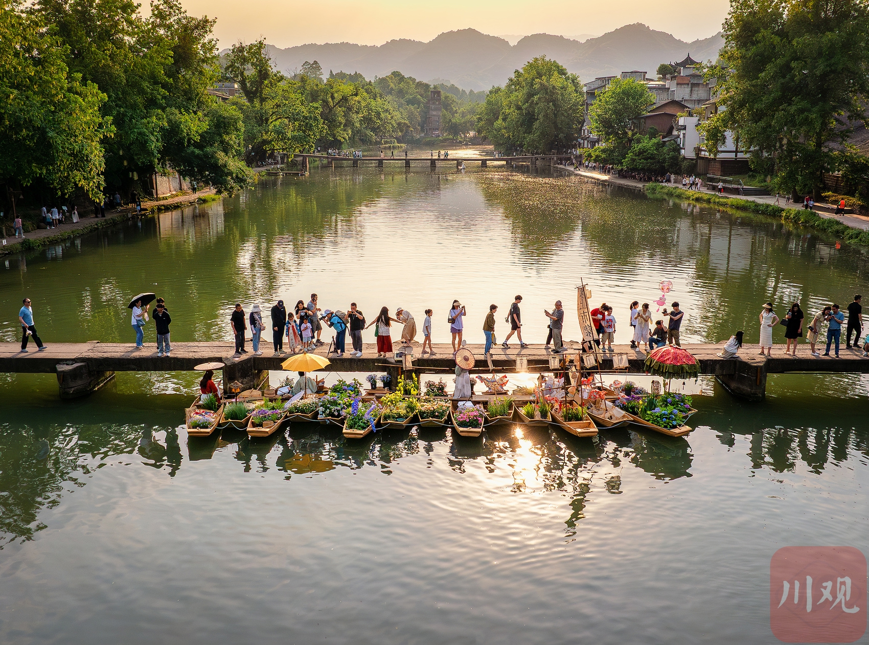 “五一”假期,成都邛崃市夹关古镇的水上市集热闹非凡,游客们纷纷前来感受水乡别样的味道。C视觉签约摄影师 沈军