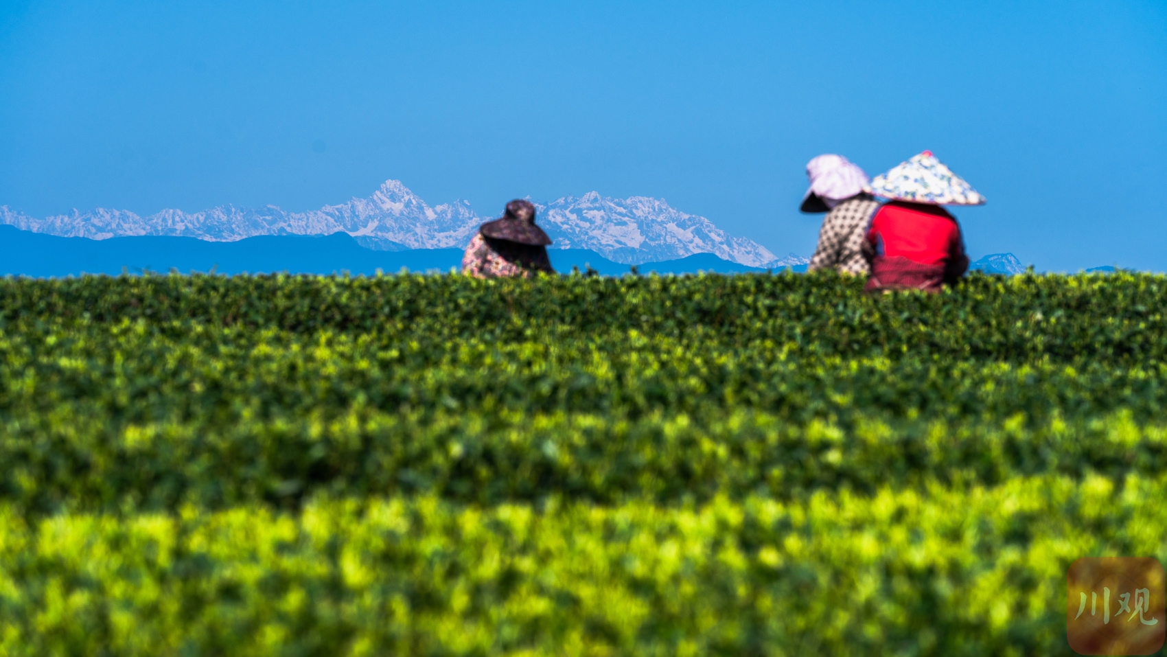 春夏之交,雅安名山县红星镇大地指纹茶园,在雪山之下,茶农开始了一天的采茶工作。C视觉签约摄影师 李旭