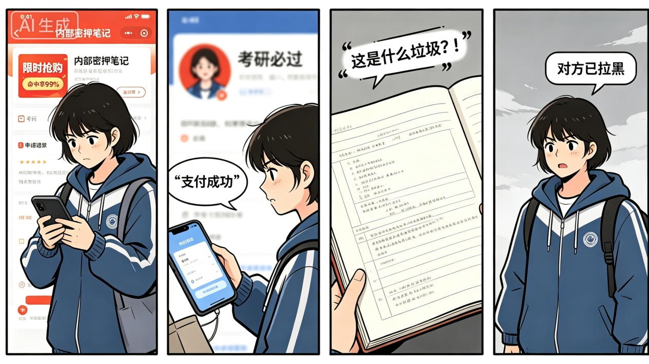 考生付款后发现错漏百出、货不对板,商家往往直接拉黑失联,维权无门。不少考生抱着“宁可信其有”的心态重金购入,最终浪费了宝贵备考时间,承受经济损失,大多只能自认倒霉。