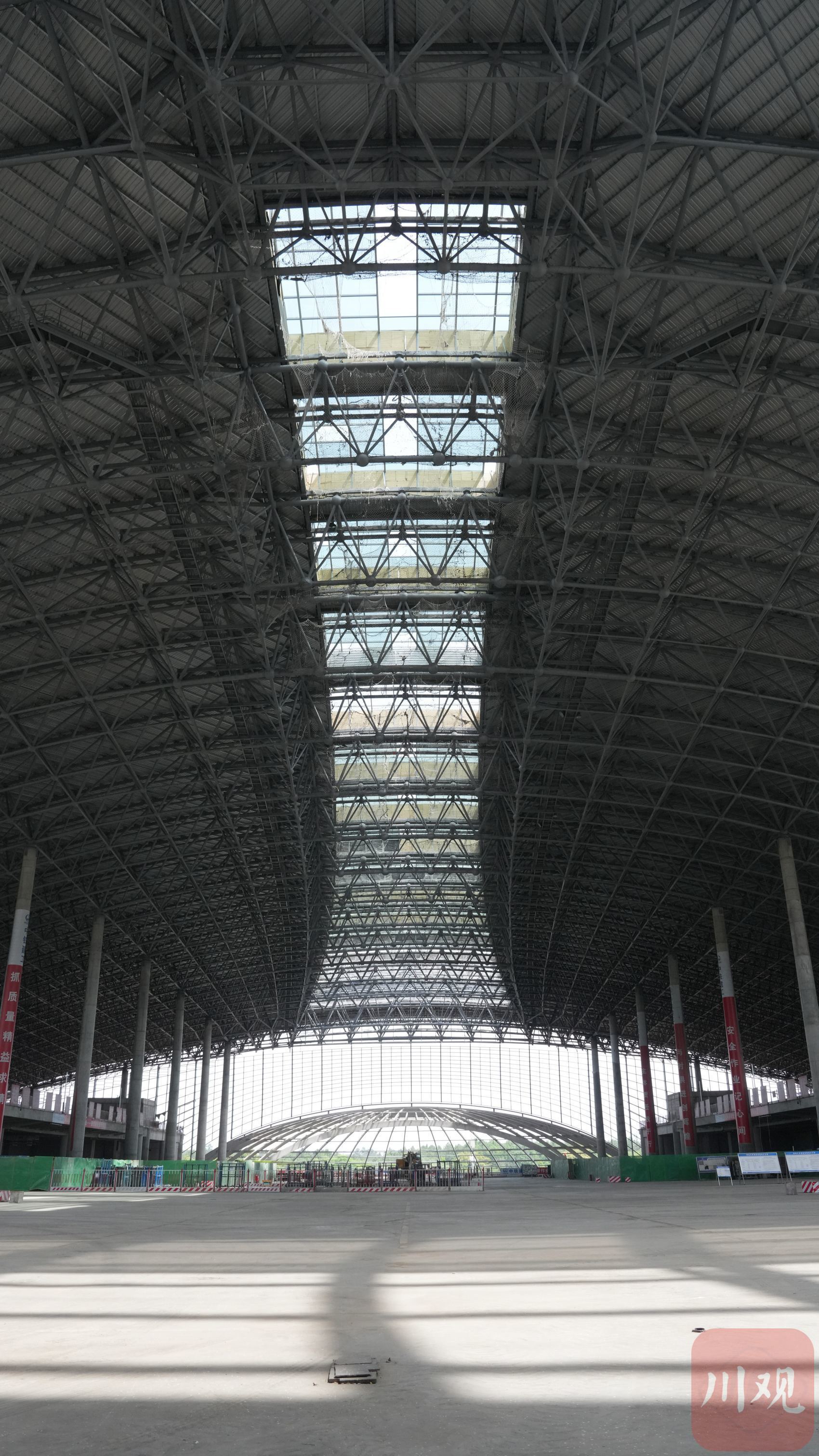 “目前主体全部完成,南场装饰装修和机电设备安装完成70%。”中国铁路成都局集团有限公司客站建设指挥部天府站项目指挥长刘伯军说。现场仍有脚手架,“凤凰”振翅欲飞的外观已然成形。