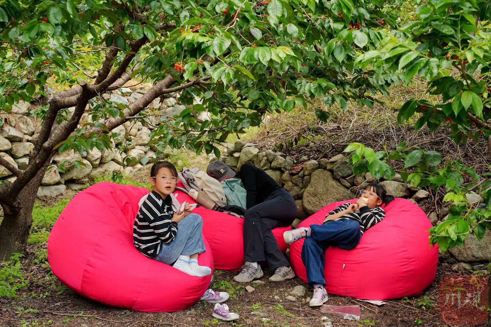 游客在樱桃林间“放空”自我。