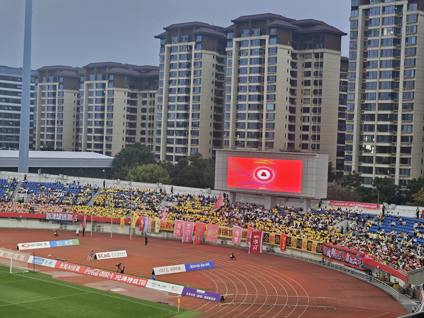 体育场一侧成都球迷聚集区。