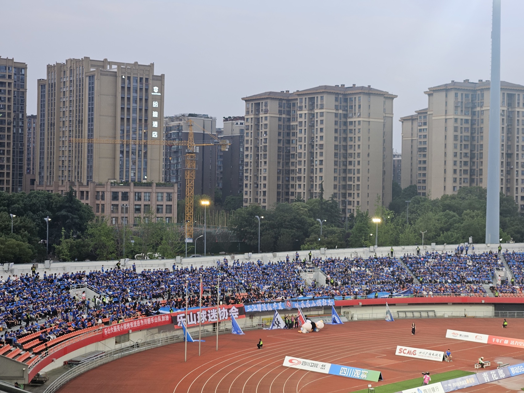 提前到现场为球队呐喊助威的乐山球迷。