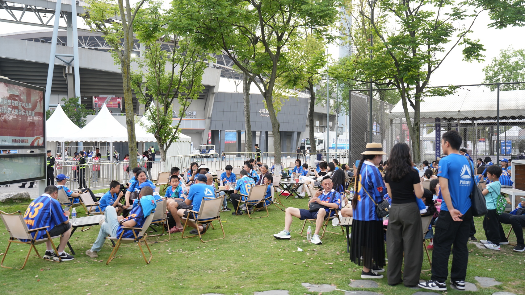 场外,乐山商家带来甜皮鸭、钵钵鸡等特色美食;嘉年华新增水上乐园供小朋友嬉戏,更有“成都造”新能源汽车供市民体验智能化操作。从舌尖、浪尖到指尖,全方位升级文旅体验。远征成都的乐山球迷还带来巨大横幅:“周末下班,直奔乐山”。作为省内唯二拥有世界文化与自然双重遗产的城市,乐山与成都的互动,可谓强强联手。