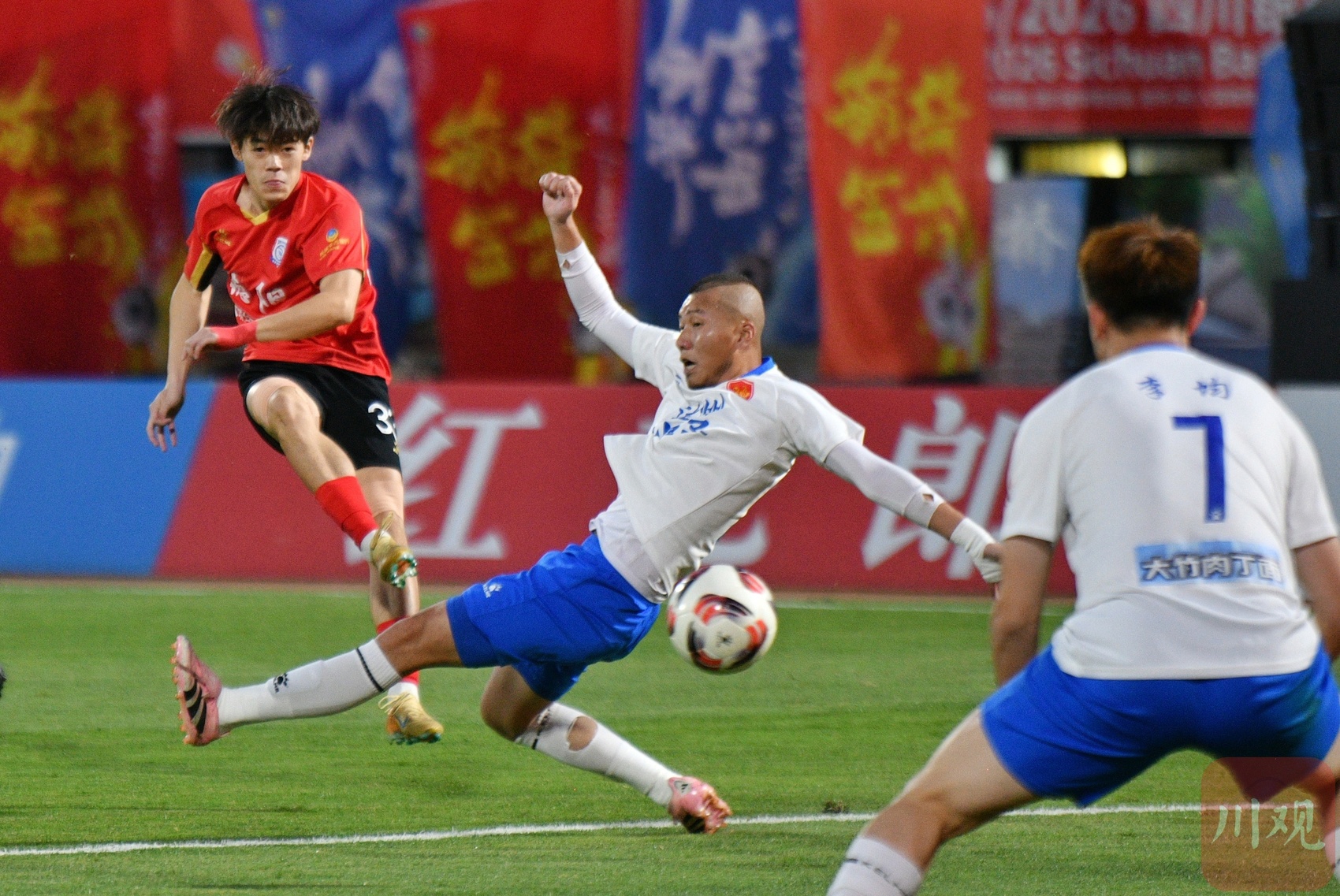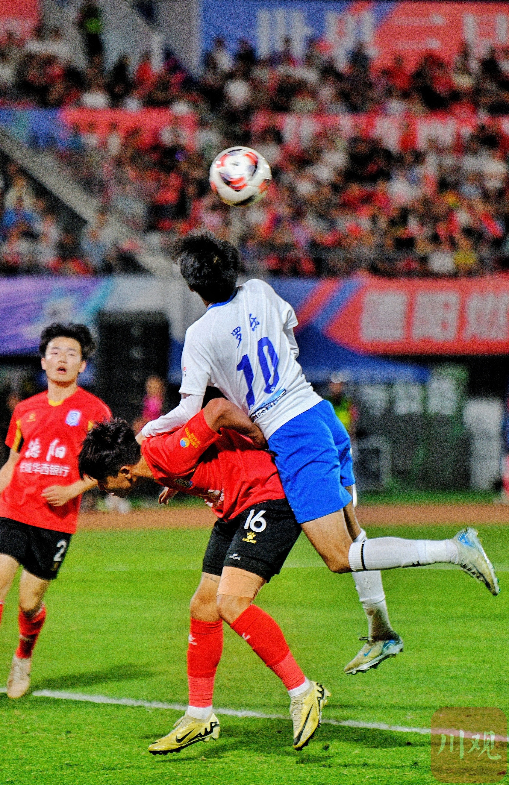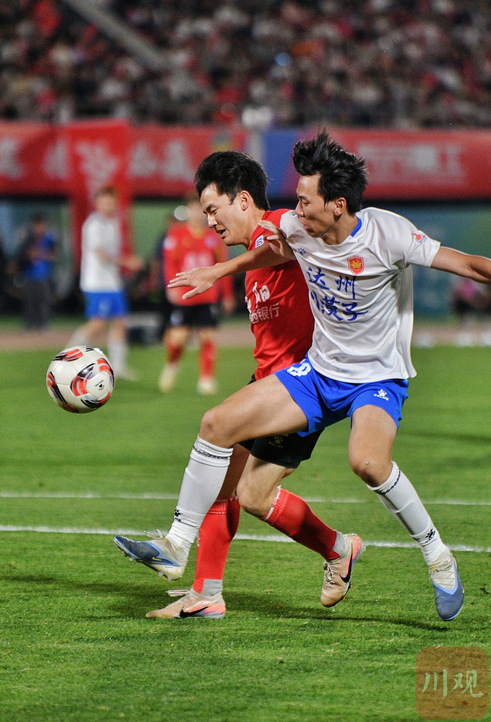 4月25日晚,2025/2026四川银行四川省城市足球联赛决赛阶段第七轮在德阳市体育公园主体育场打响,主场作战的德阳重装队与达州川汉子队经过90分钟激战,最终以0比0握手言和。