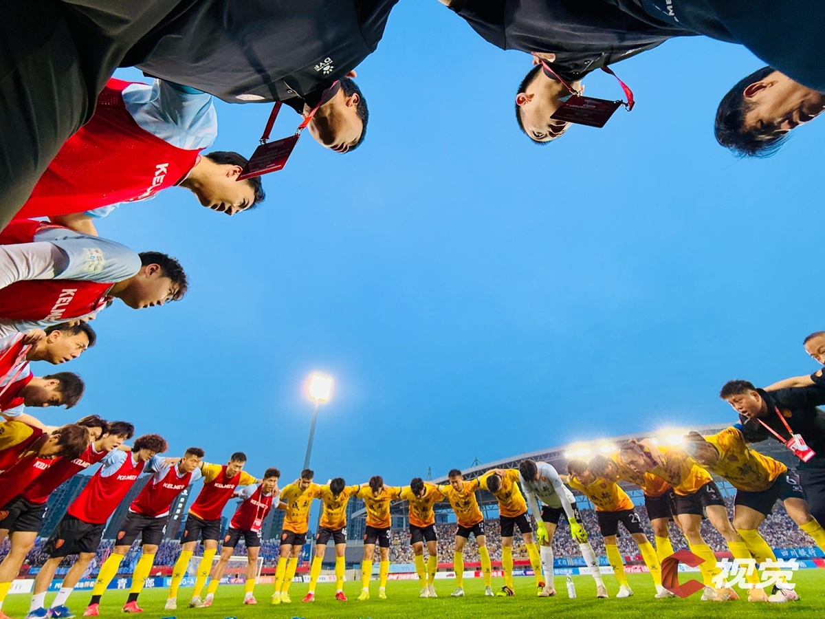 4月25日,成都锦城队主场迎战乐山味道非常队。图为赛前成都队众人围成一圈,并肩鼓劲。C视觉签约摄影师 龚榜玉 摄