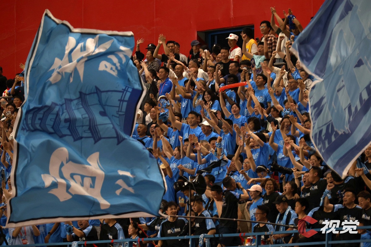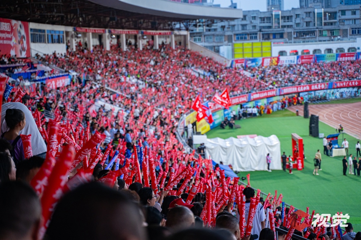 4月25日,德阳重装队主场迎战达州川汉子队,双方以0:0的比分握手言和。图为现场球迷加油助威。C视觉签约摄影师 黄健 摄