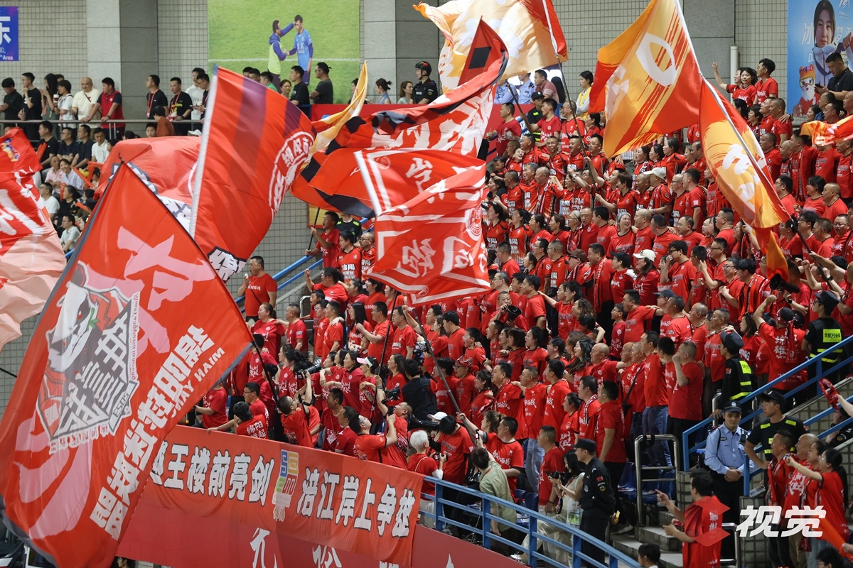 4月25日,宜宾长江首城队主场迎战绵阳九洲长虹队。图为宜宾球迷为主队加油。C视觉签约摄影师 彭珉翔 摄