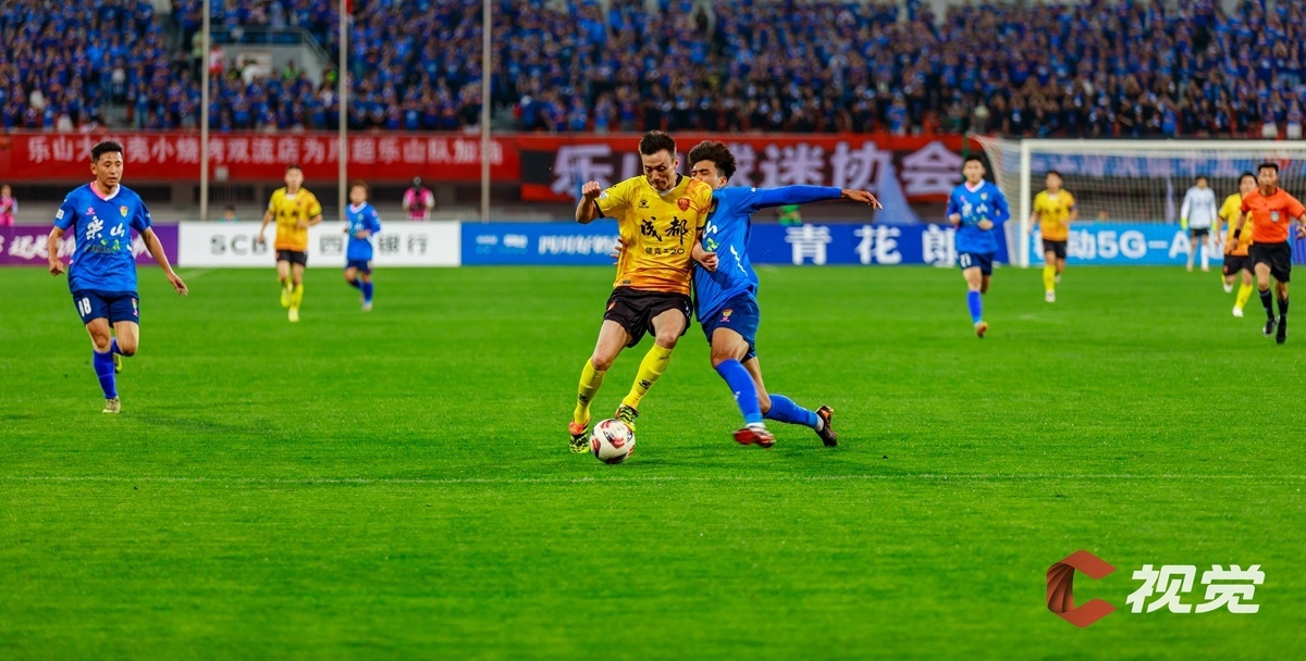 “乐山雄起!”下午,身着蓝衣的乐山球迷组成方阵,在鼓声中摇旗呐喊——乐山球迷助威团组织了2300余人前往双流体育中心,希望见证客场取胜。当天场内迎来21368名球迷,歌手赵传现身看台,也引爆现场热情,全场合唱《我是一只小小鸟》。上半场双方互有攻守,均未能破门。下半场战况升温,成都率先发力,两名球员先后破门建立领先优势。乐山虽顽强反击扳回一球,最终还是成都稳住局面,以2:1胜出,暂时位居积分榜首位。
