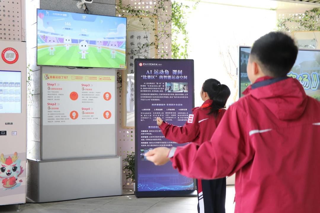 “放学不想走的孩子越来越多了。”4月23日,成都市双流区棠湖中学实验学校(东区)党支部书记、校长陈霞告诉封面新闻记者,“要么在AI运动屏前PK,要么跑步打卡,或者在智能器材柜借个球玩,孩子们随时都能找到自己喜欢的运动方式。”