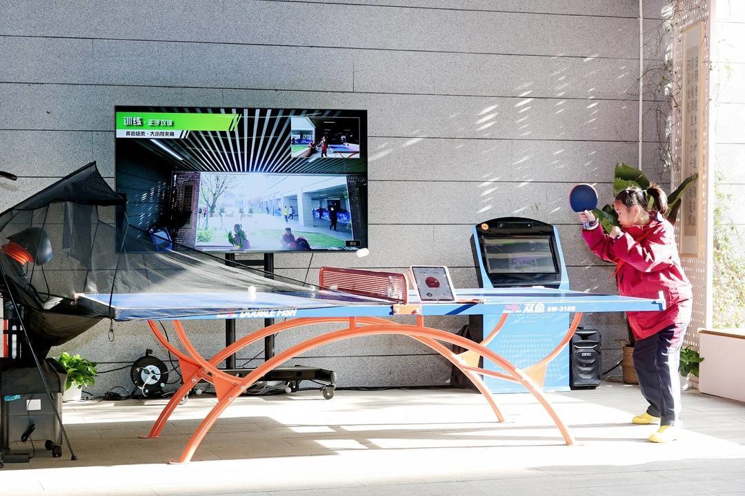 在校园内,记者看到不少智能乒乓球系统,学生与自动发球机对打,摄像头采集数据进行分析。