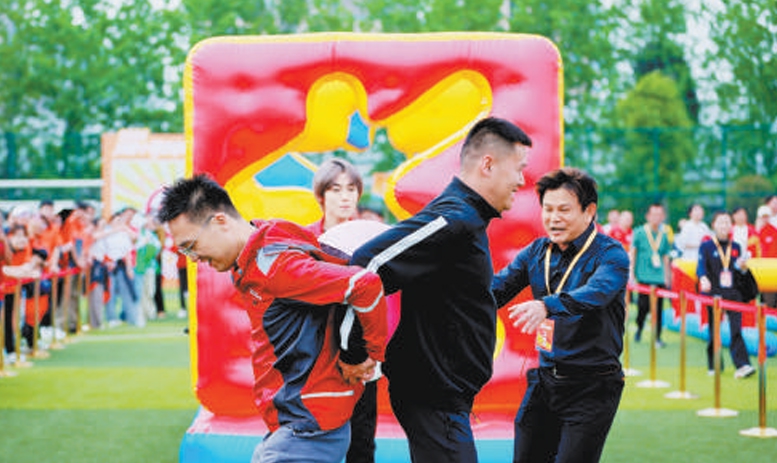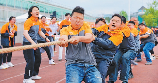 赛事项目丰富多元,囊括骑行、足球、乒羽、田径、电竞、无人机足球等项目。绕桩骑行考验日常功底,足球射门笃定专注,电竞赛场指尖交锋,拔河赛场众志成城……“平时我们工作很忙,没什么机会运动,这次参加运动会我觉得特别解压!”成都世运会火炬手、外卖骑手赵明阳说。