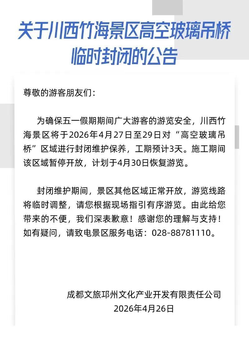 高空玻璃吊桥临时封闭的公告