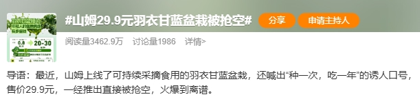 今日,话题“山姆29.9元羽衣甘蓝盆栽被抢空”登上热搜。