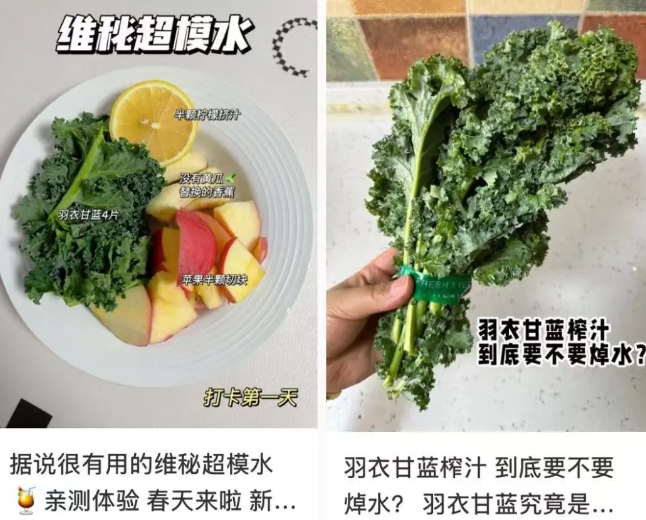 羽衣甘蓝凭啥这么火?说到底还是踩中了年轻人的养生风口。据央视财经,羽衣甘蓝100克仅30千卡,低热量、高纤维、多维生素,完美戳中年轻人“想喝奶茶又怕胖”的痛点。再加上“超模同款”“养生顶流”等社交标签,它成了晒生活态度的社交货币。
