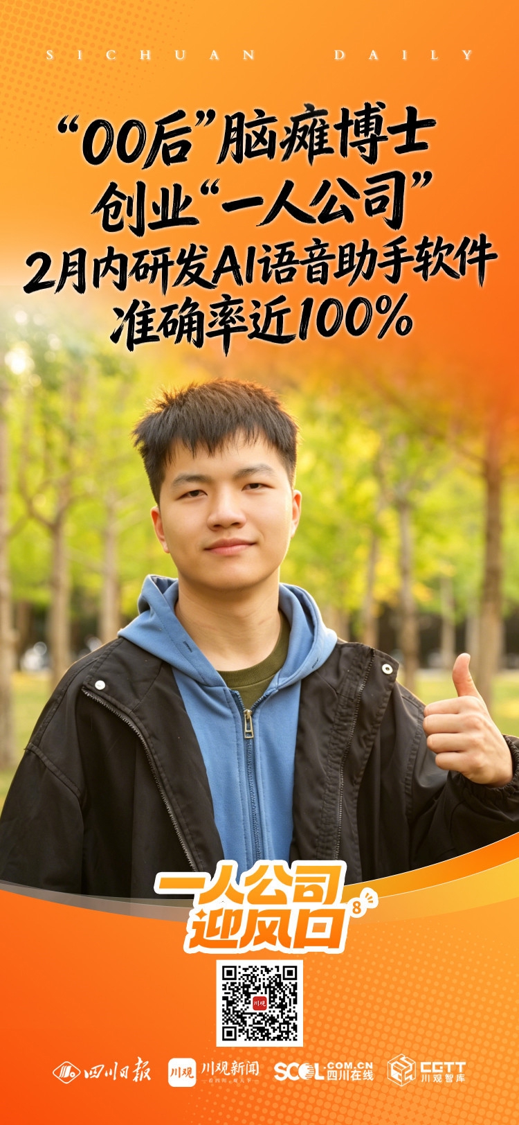 去年11月,他开始尝试创业做“一人公司”,不到2个月时间,他就研发出一款针对语音障碍人士的AI语音助手软件,并吸引到星阙智创(四川)科技有限公司的一笔几十万元的启动资金。