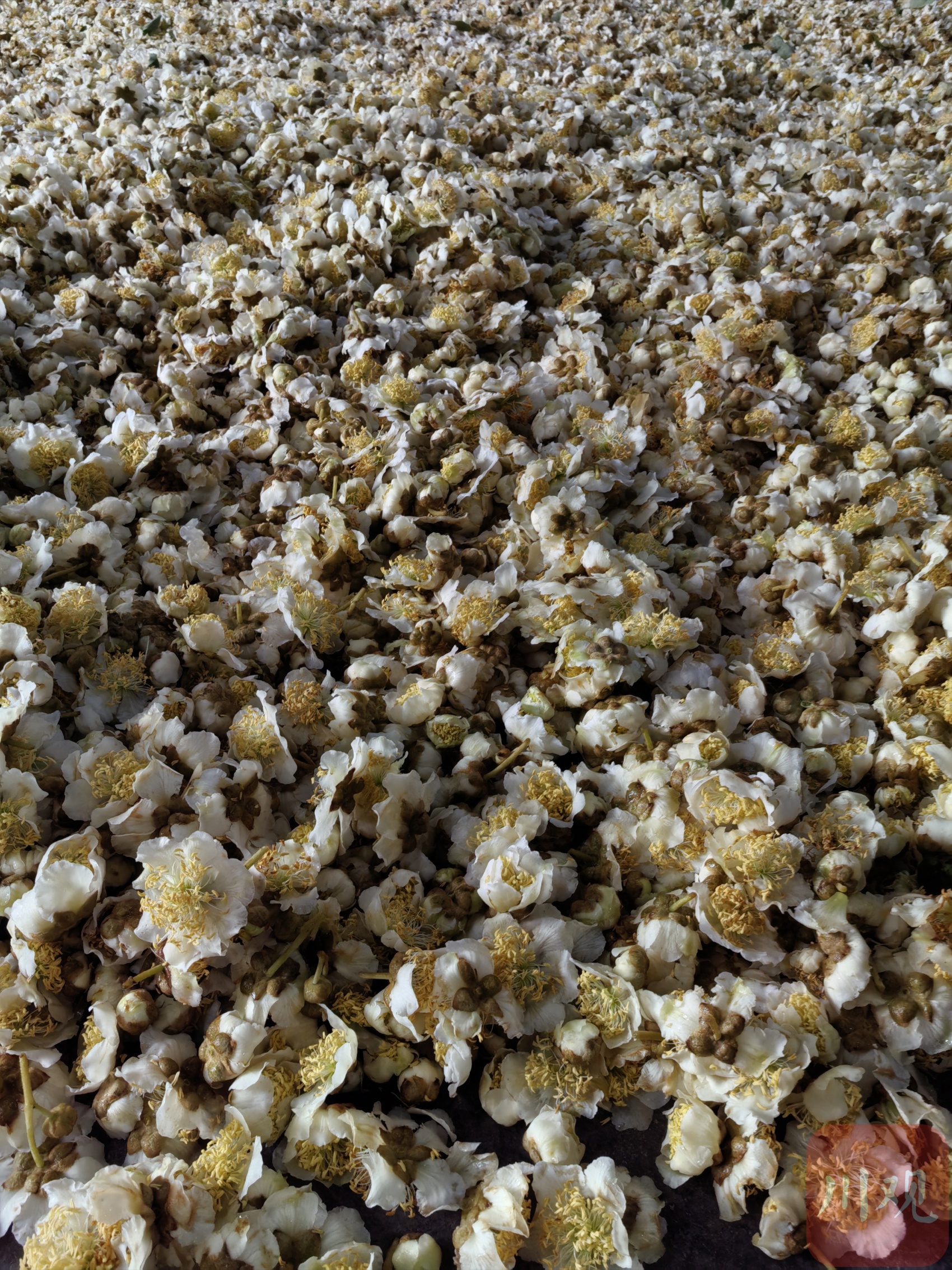 巧玉家庭农场的猕猴桃枝头上没有挂果,却密密麻麻布满了花骨朵儿。随着时间的推移和气温的升高,在近一个星期的花期中,这些花骨朵儿将陆续开出一朵朵黄白色的花。袁美君踮起脚尖,赶在这些花朵露白后至绽放前,将它们小心翼翼地摘下。就在昨天,仅袁美君一人便采摘收集了约35公斤猕猴桃雄花。