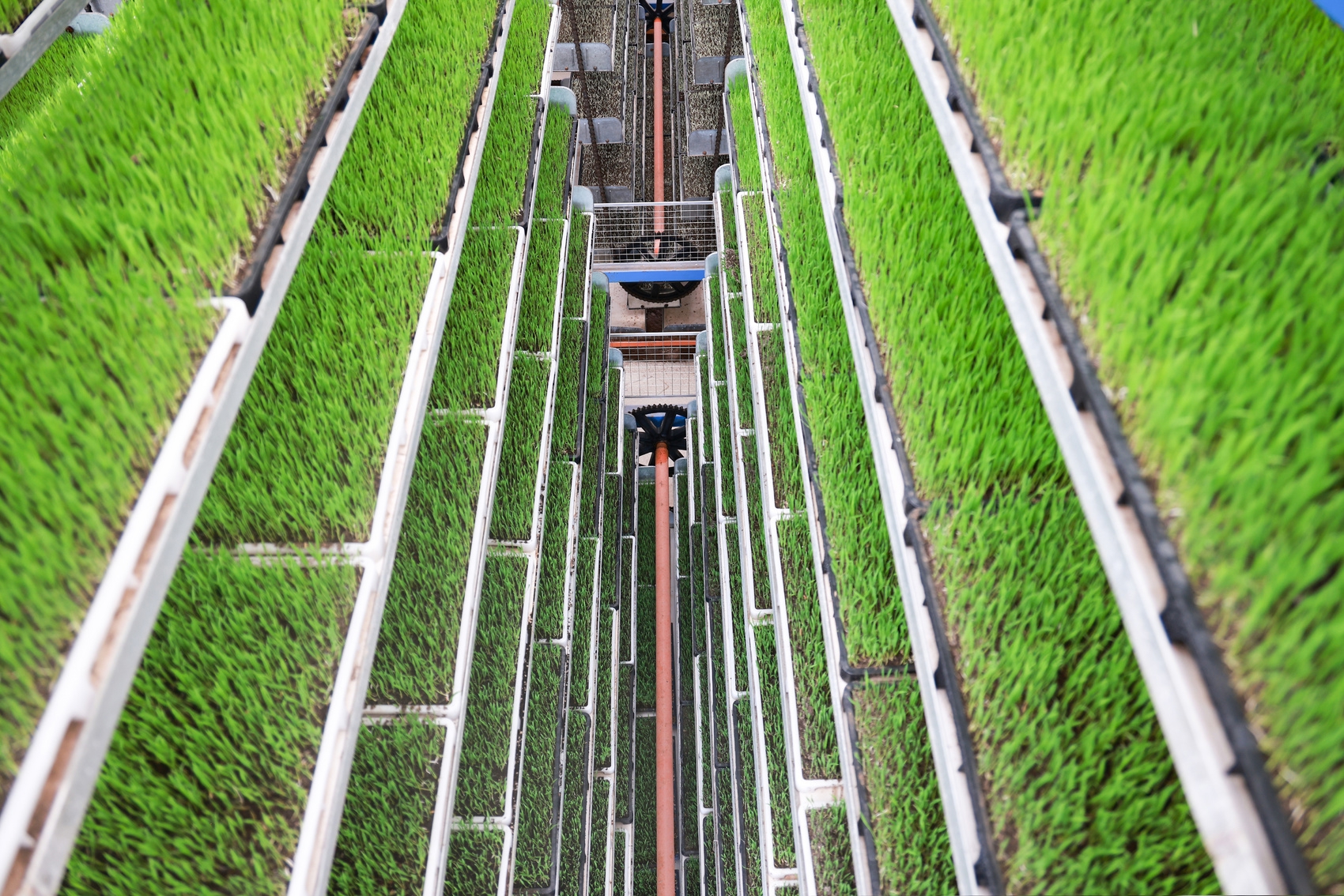 4月21日,遂宁市蓬溪县文井镇青龙咀村,禧德祥种植专业合作社的智能化育秧中心里,今年的最后一批秧苗已经育好,等待被移栽到稻田。