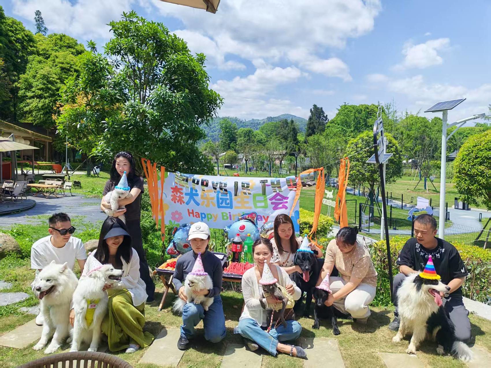 “五一”到来前的周末,森犬乐园为宠物举办生日宴,吸引宠物家庭参与。
