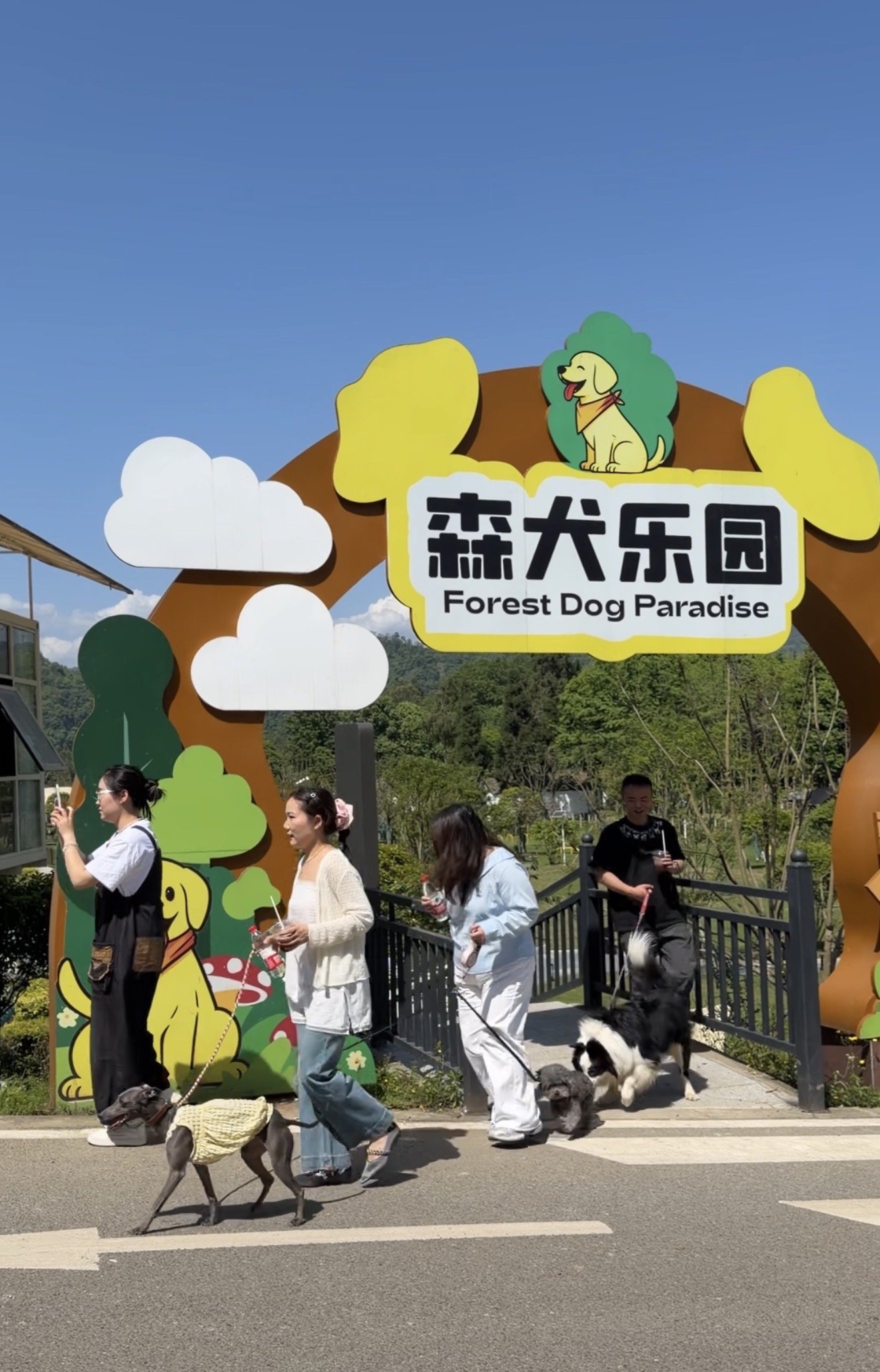 还未到“五一”,森犬乐园已迎来一波又一波访客。“有集体活动考察场地,也有家长为宠物托管提前踩点。”乐园负责人牛云东本就是养宠人,深谙主人的消费心理。桑园镇背靠䢺江生态带,浅丘、草坪、林盘环绕,是天然适配宠物活动的优质空间。
