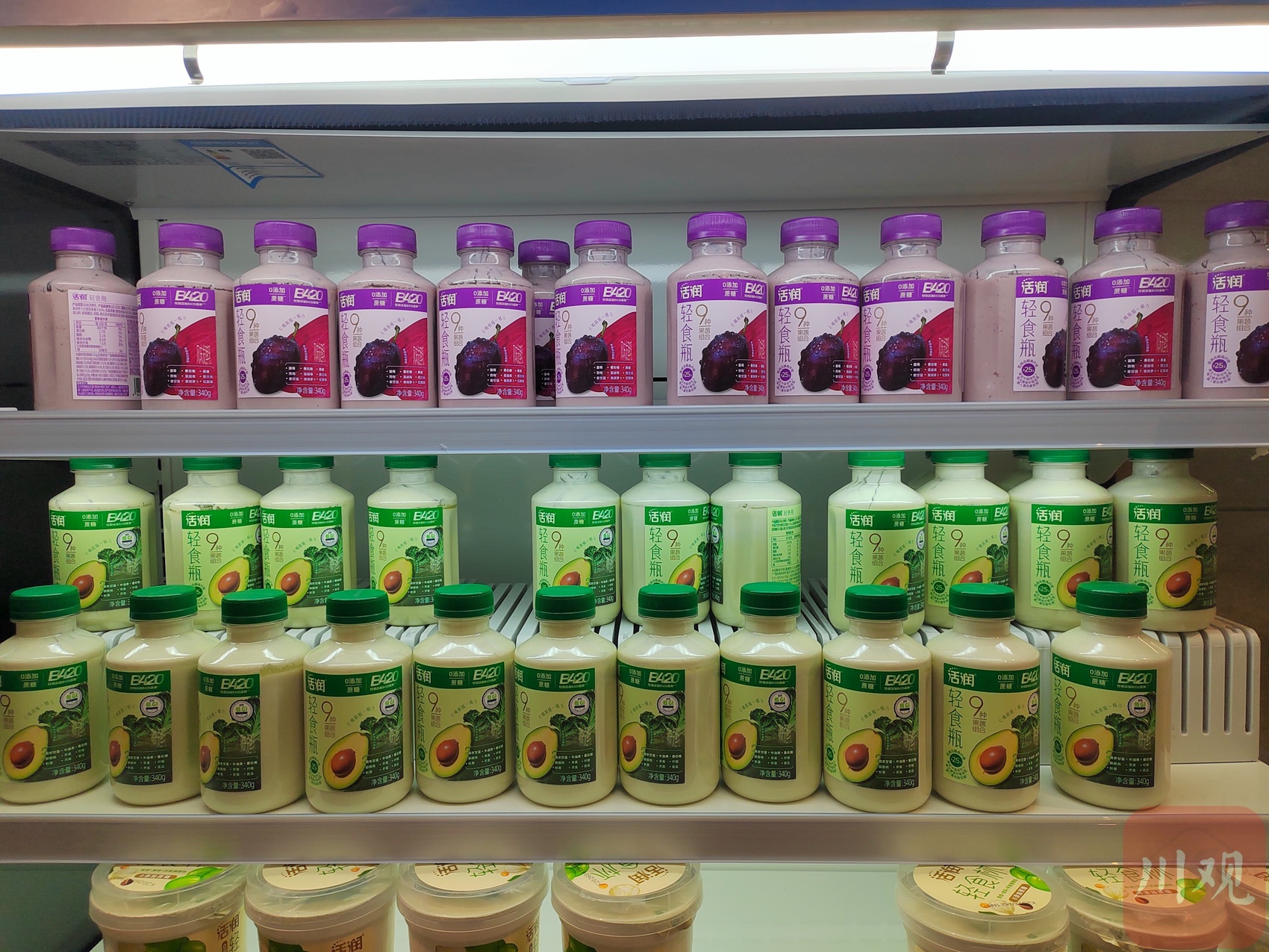 下午1时许,记者来到成都市锦江区阳光新业大厦的盒马鲜生线下店探访。现场可见,羽衣甘蓝系列产品摆在显眼货架,共有3款相关产品。其中,“绿野仙踪酸奶昔”以羽衣甘蓝、青苹果等为原料,促销价9.9元/杯;另外两款原料相似的饮品,促销价13.8元/瓶。记者遇到一位选购的李姓顾客,对方表示这款饮料在网上很火,路过进来打算买一瓶尝尝。销售人员告诉记者,相关产品已上架一个多月,较受年轻群体欢迎。
